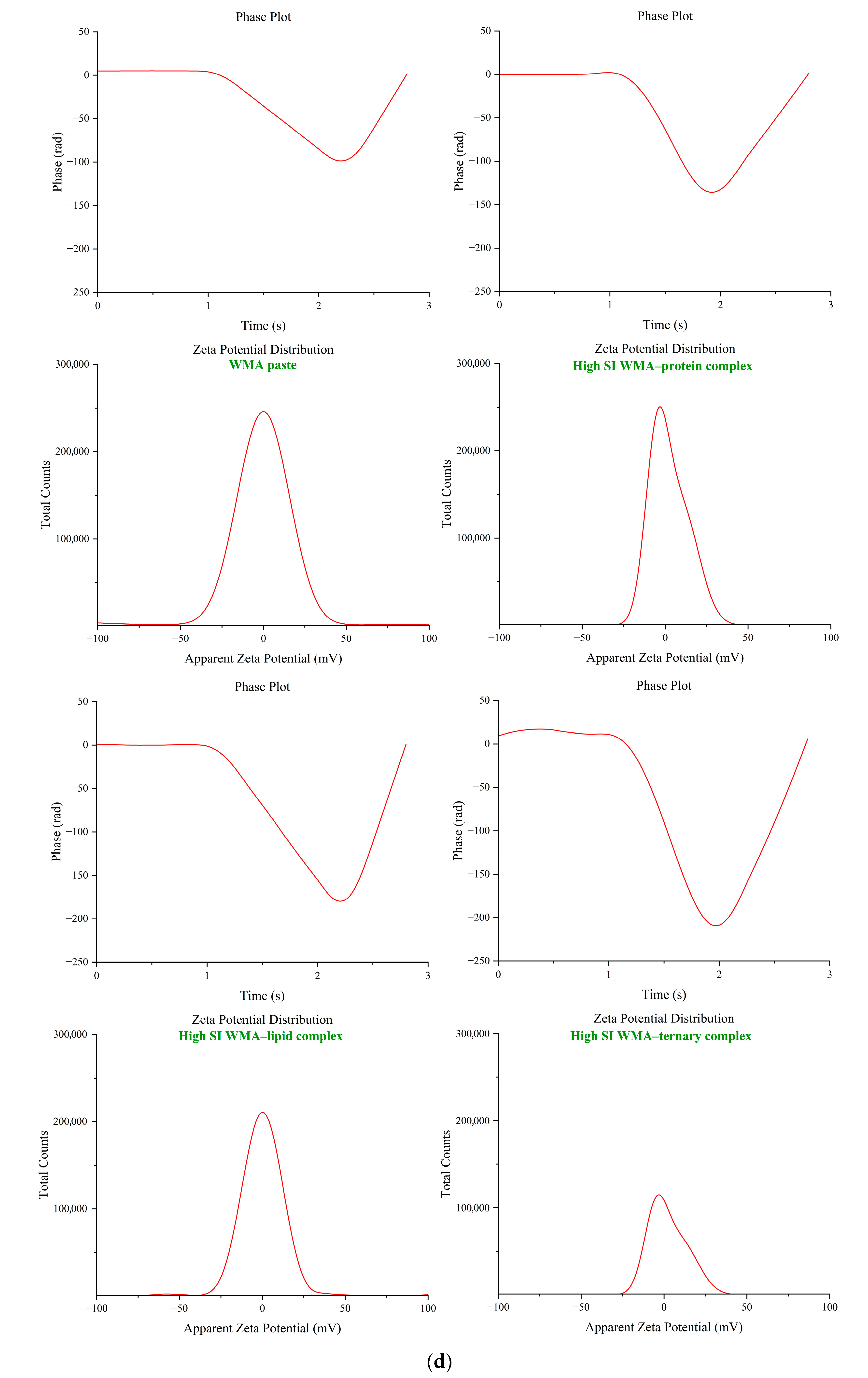 | High-SI WMA–ternary complex | 3.97 ± 0.12 d | 1.98 ± 0.08 d | 1.99 ± 0.09 d | −1.44 ± 0.03 a | 1.44 ± 0.03 d |