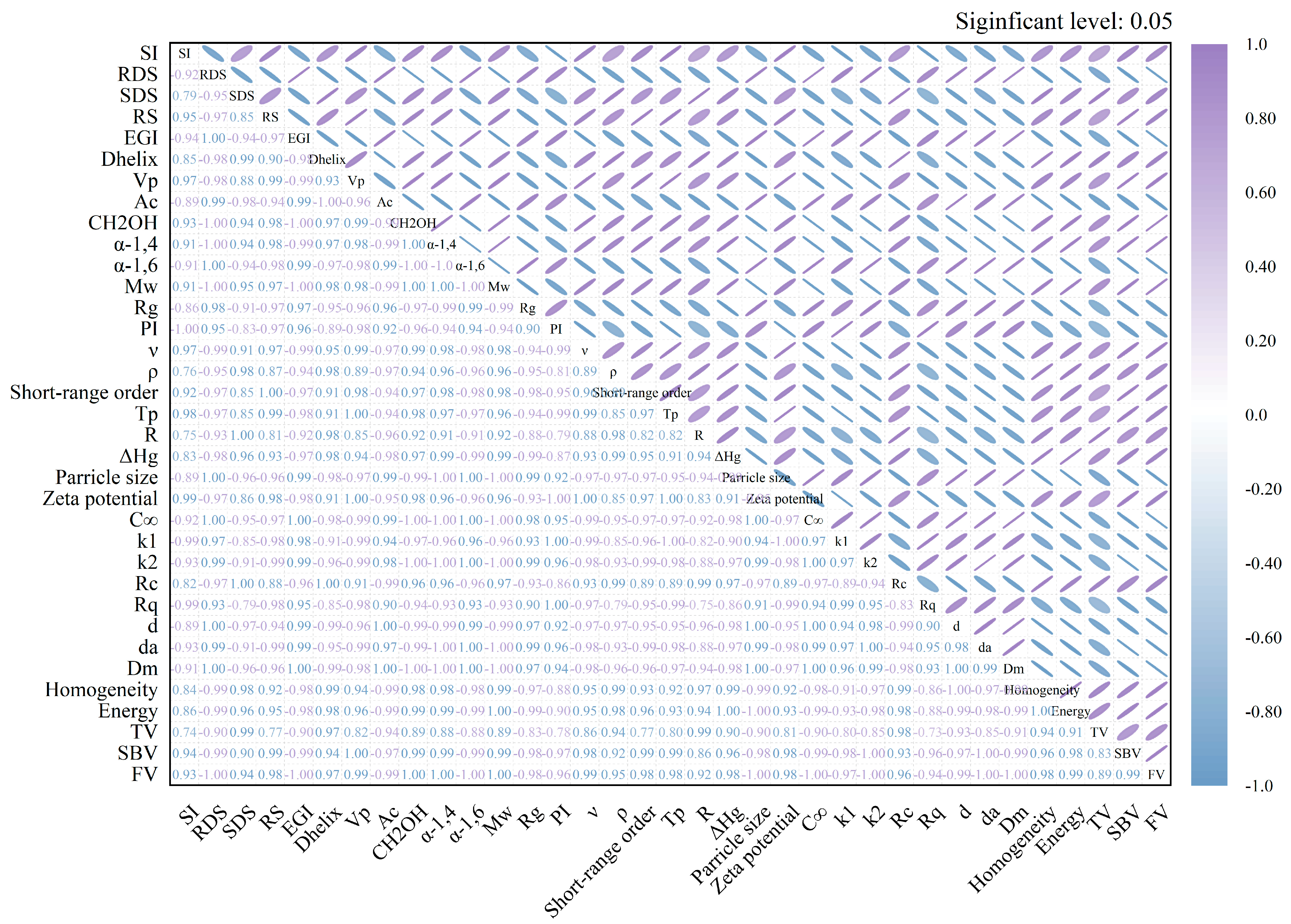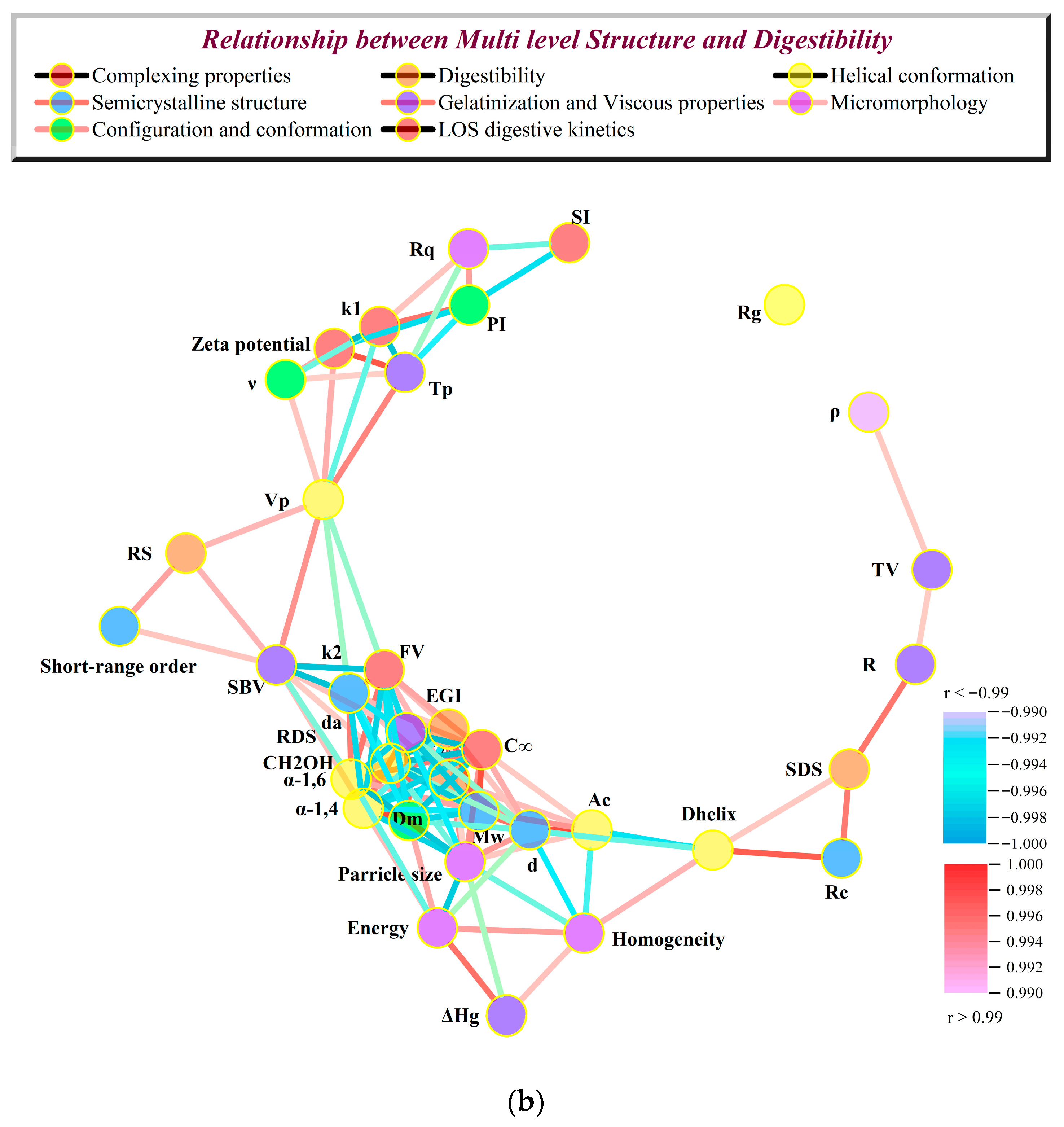 3.7. Relationship Between Slow Digestibility and Physicochemical Structural Characteristics