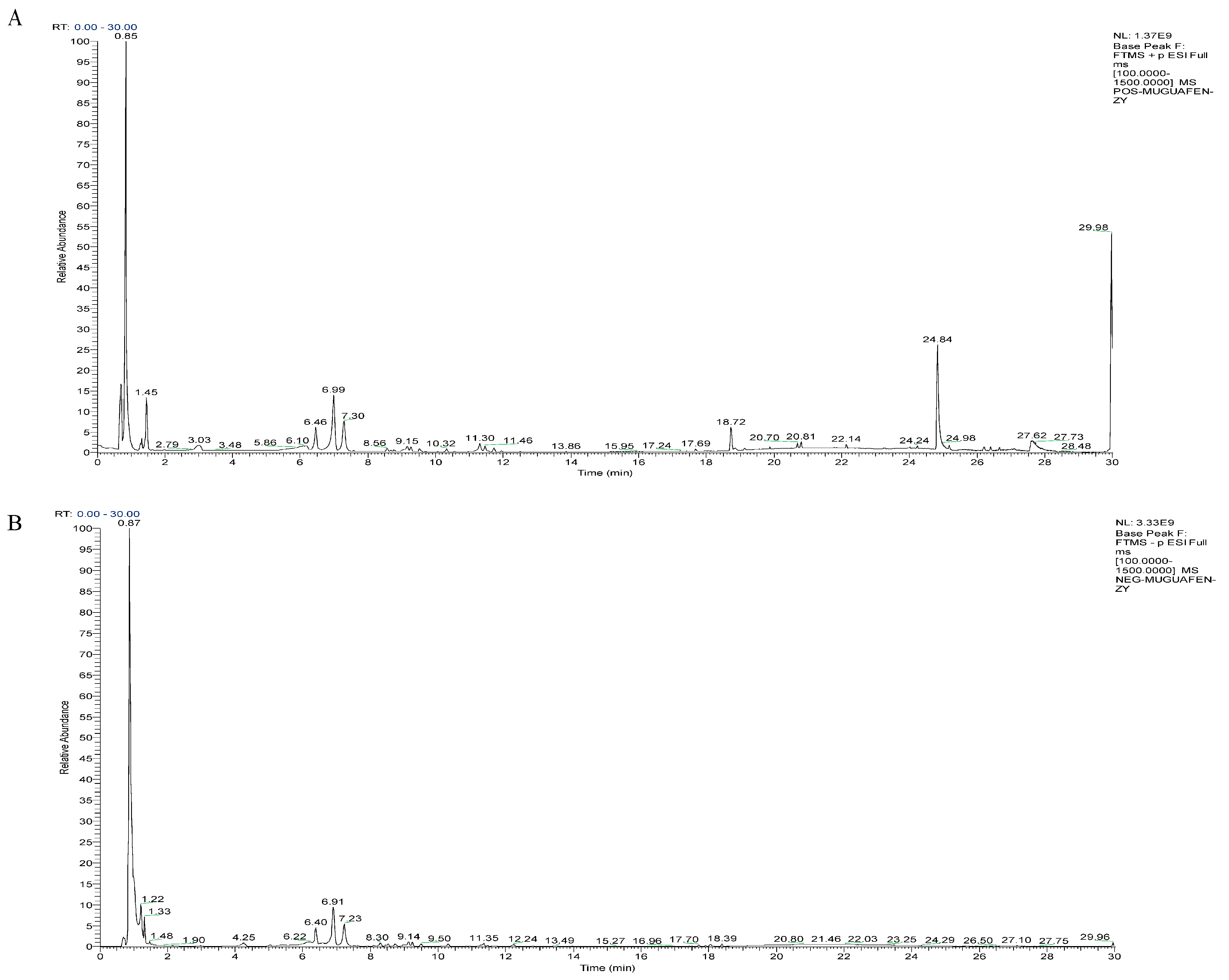 | NO. | Formula | English Name | Class | Experimental m/z | Theoretical m/z | Mass Error (ppm) | Relative Peak Area | Retention Time (min) |