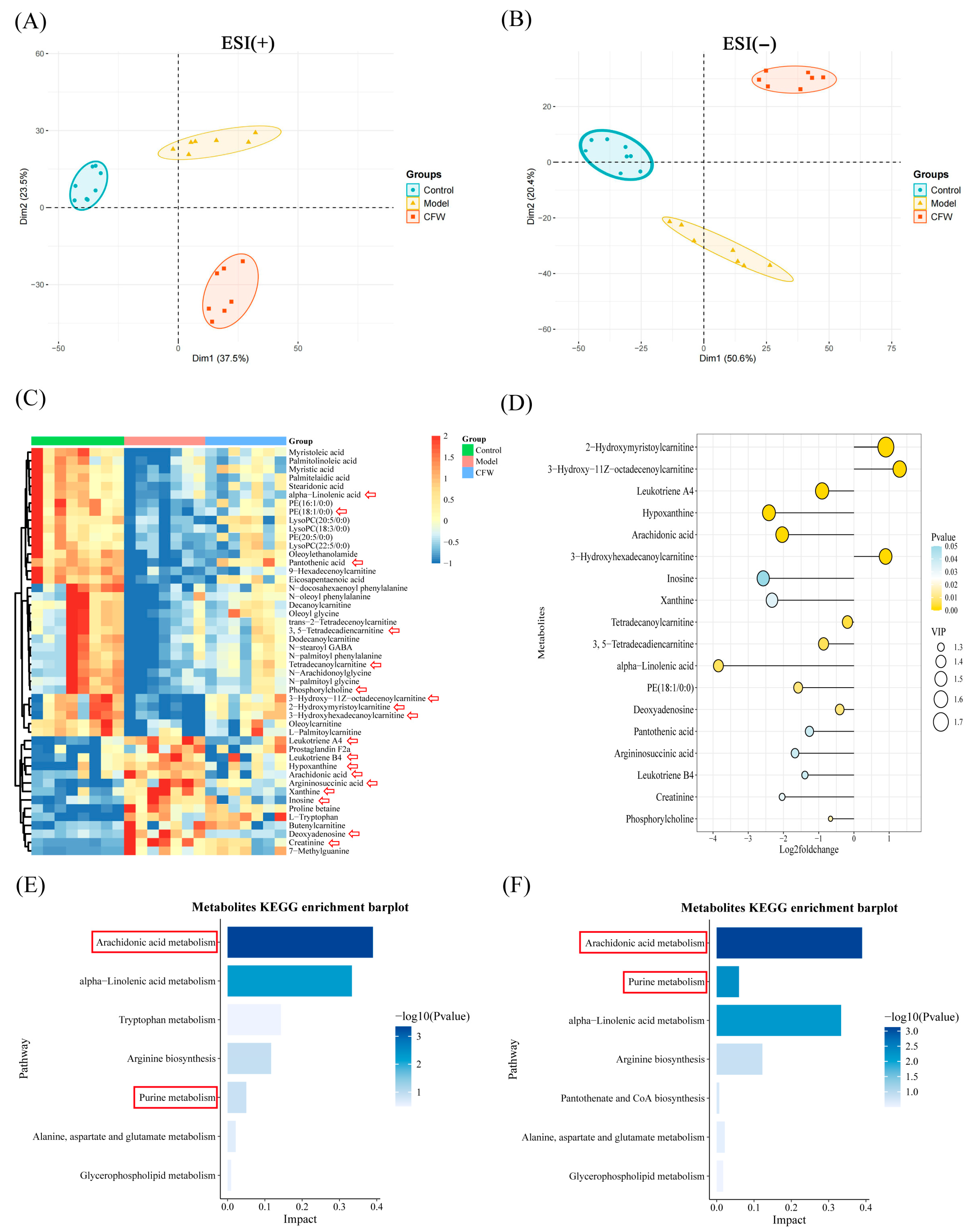 3.6. Regulatory Effect of CF on Serum Metabolic Homeostasis in Hyperuricemic Mice