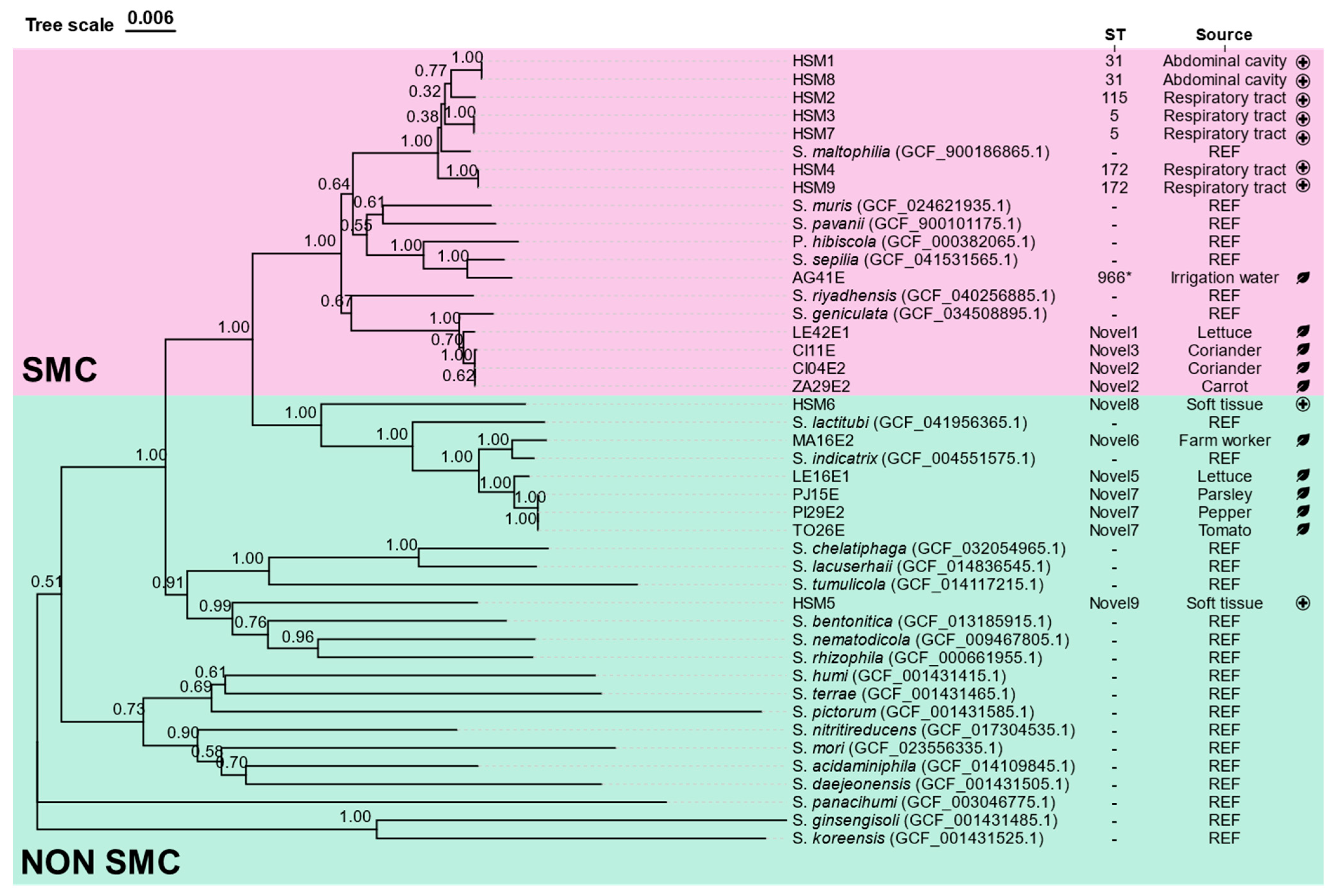 | HSM6 | Stenotrophomonas maltophilia | Stenotrophomonas sp. | Soft tissue | |