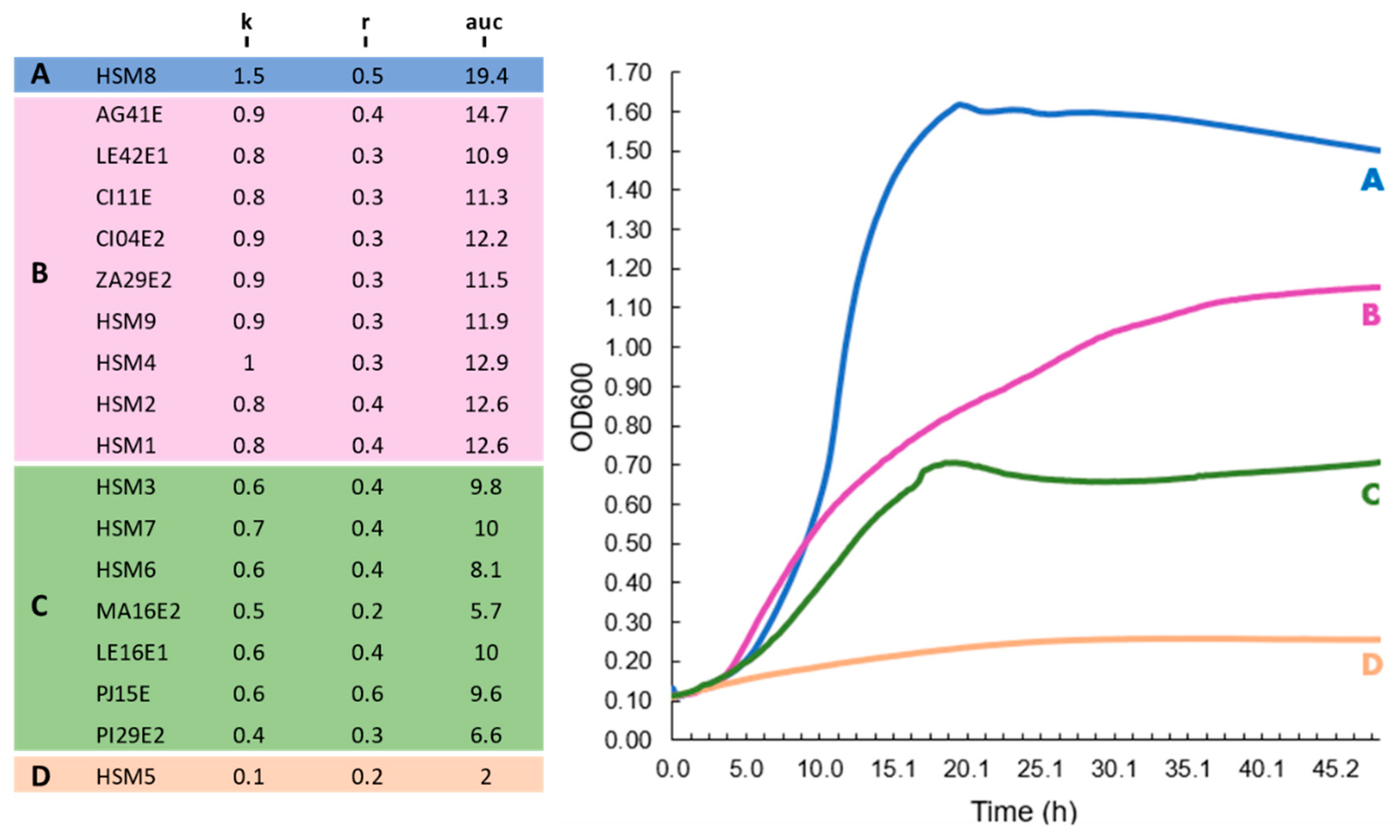 2.3. Bacterial Growth Curve Determination at 37 °C