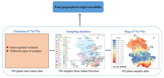 APA StyleWang, M., Jiang, Y., Han, X., Ren, A., He, J., Yin, M., Zhao, Y., & Peng, H. (2026). Fine-Scale Strontium Isotope Mapping in Eastern China (Anhui Province) and Its Application in Food Traceability. Foods, 15(1), 33. https://doi.org/10.3390/foods15010033