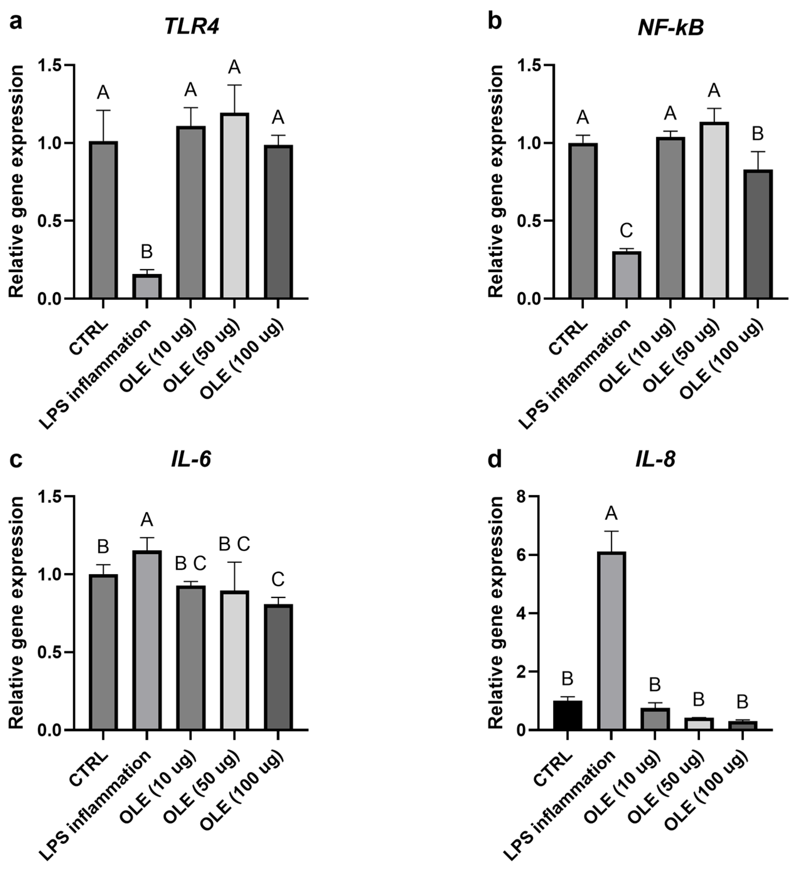 3.5. Effects on Inflammation and Oxidative Stress (qPCR)