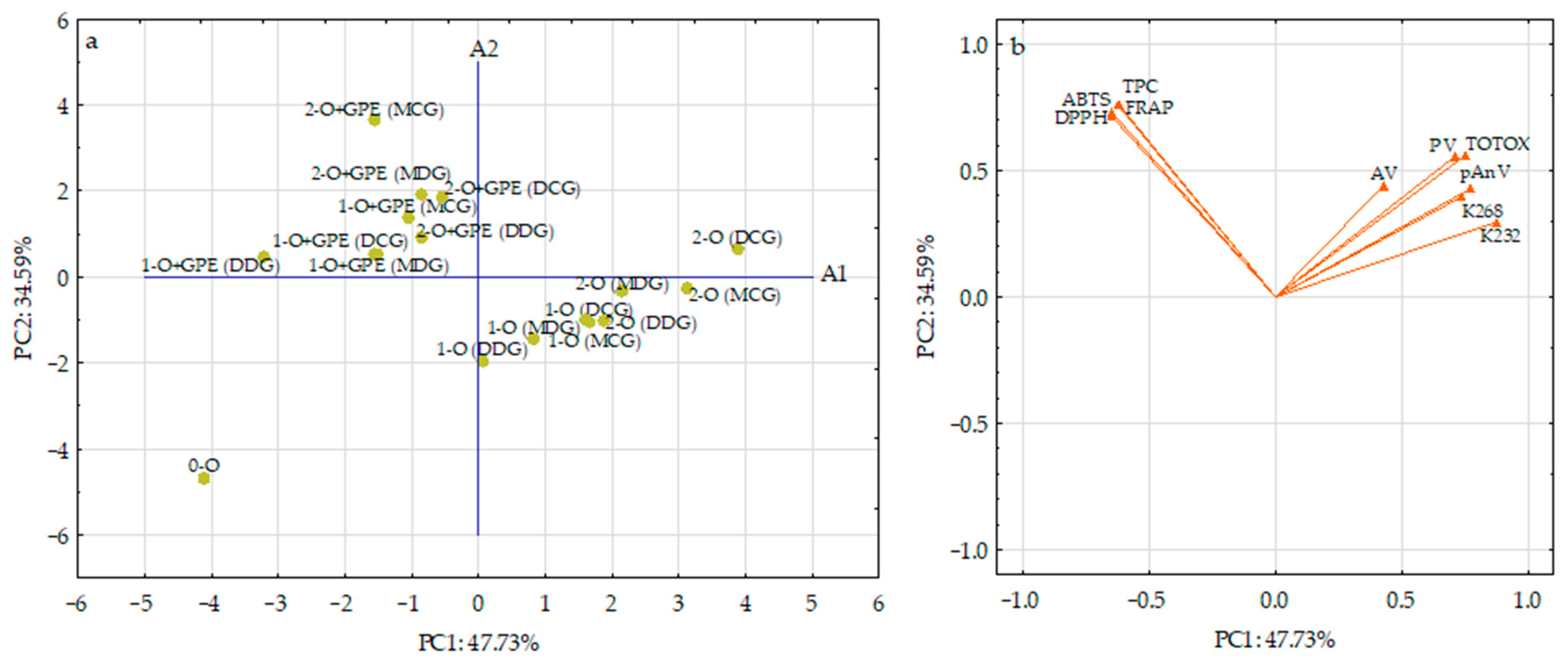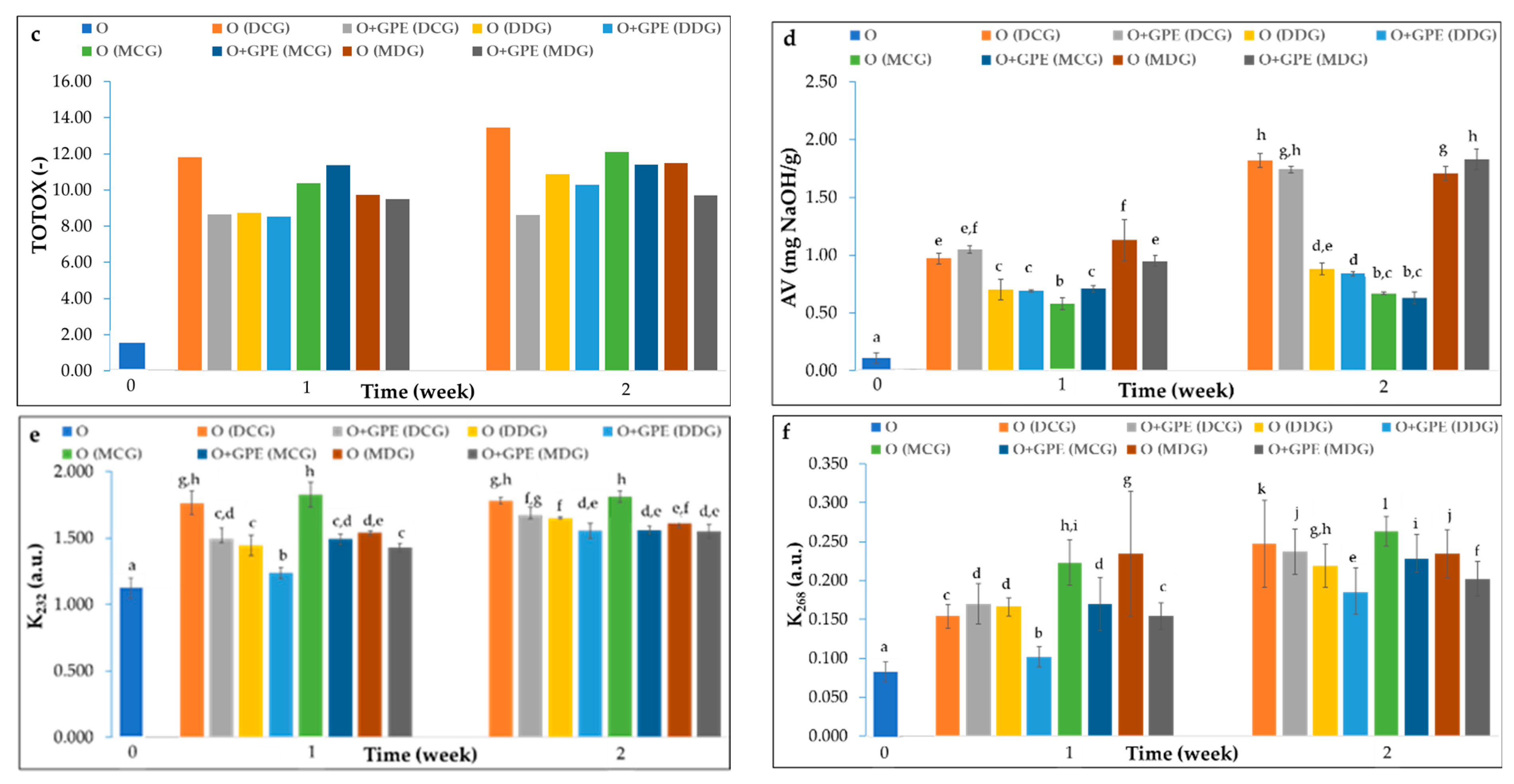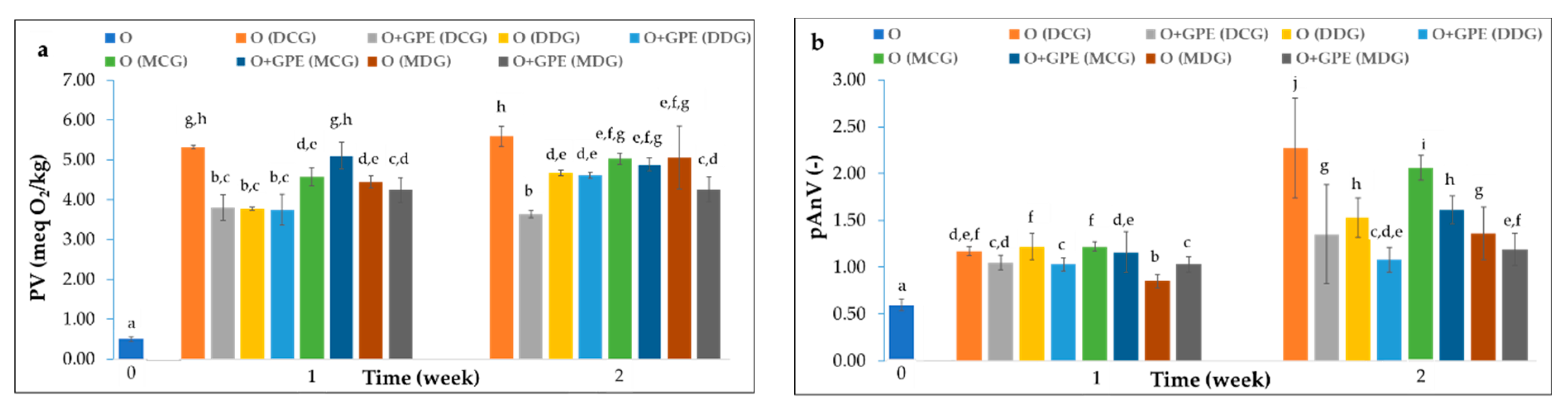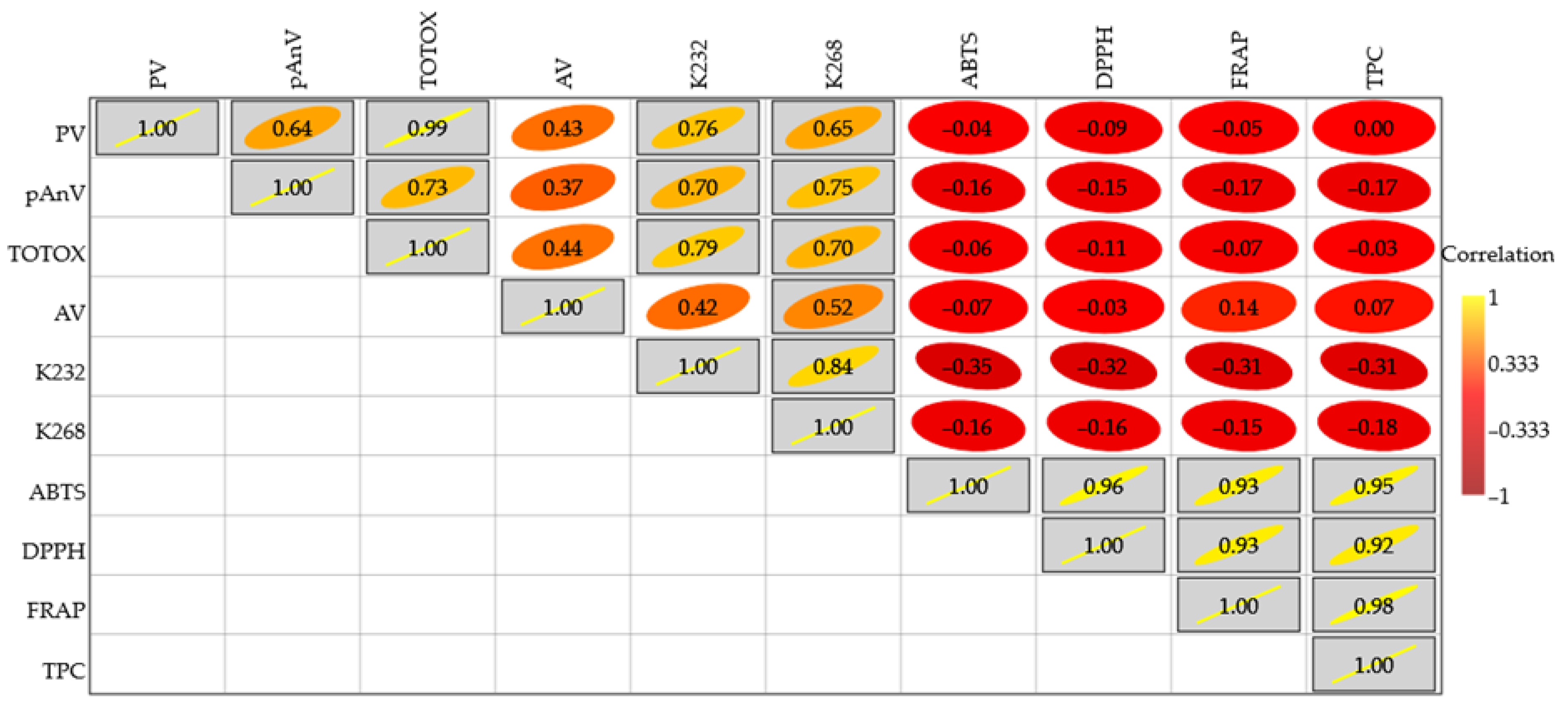 - ISO 6885:2016; Animal and Vegetable Fats and Oils—Determination of Anisidine Value. ISO: Geneva, Switzerland, 2016.