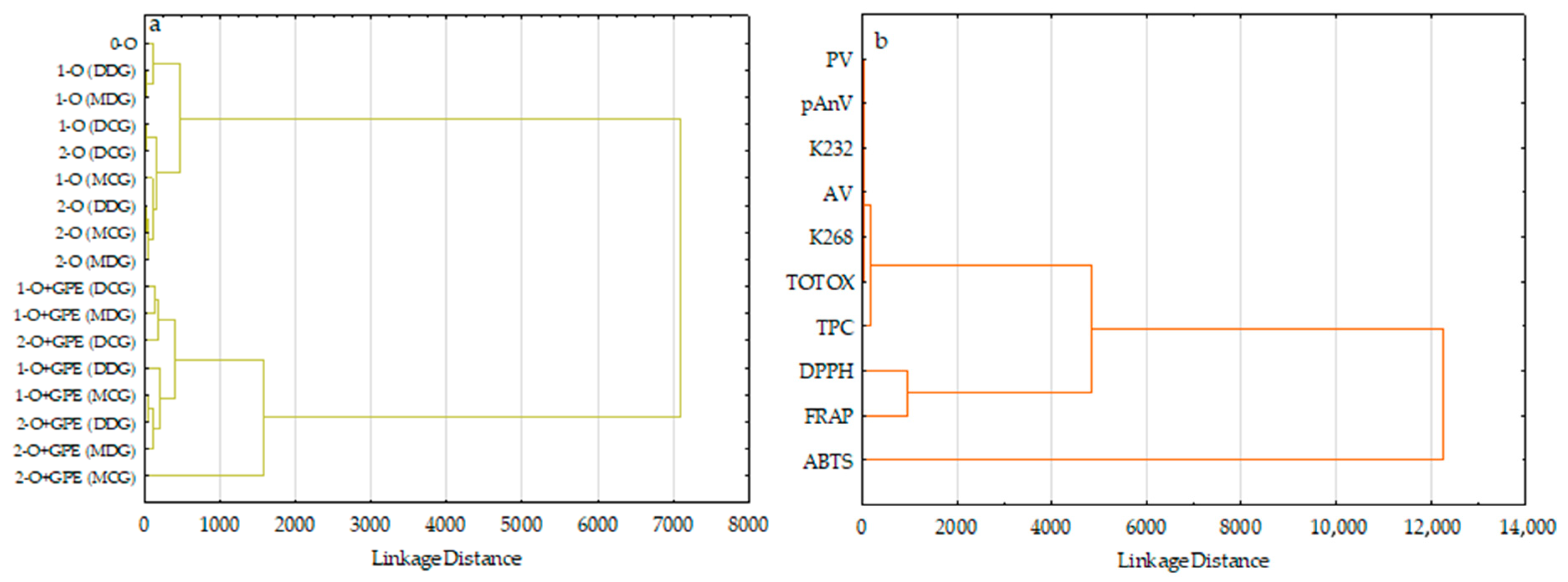 - Symoniuk, E.; Wroniak, M.; Napiórkowska, K.; Brzezińska, R.; Ratusz, K. Oxidative Stability and Antioxidant Activity of Selected Cold-Pressed Oils and Oils Mixtures. Foods 2022, 11, 1597. [Google Scholar] [CrossRef]