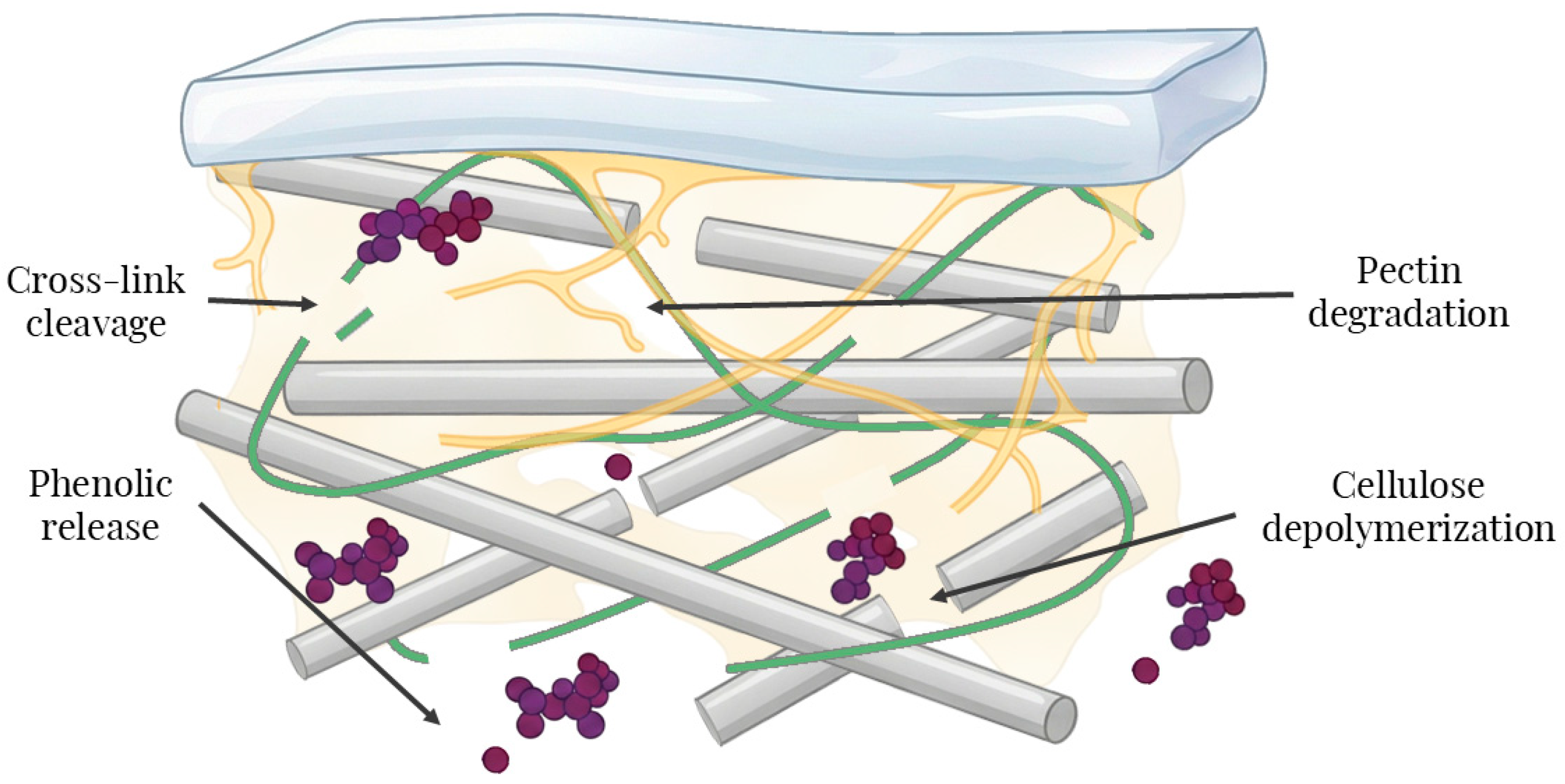 - Stanek-Wandzel, N.; Krzyszowska, A.; Zarębska, M.; Gębura, K.; Wasilewski, T.; Hordyjewicz-Baran, Z.; Tomaka, M. Evaluation of Cellulase, Pectinase, and Hemicellulase Effectiveness in Extraction of Phenolic Compounds from Grape Pomace. Int. J. Mol. Sci. 2024, 25, 13538. [Google Scholar] [CrossRef] [PubMed]
