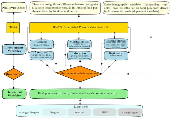 The research questions and hypotheses were designed to examine how sociodemographic factors differentiate the needs for survival and food security in relation to food purchasing behavior. The objective of this study was to identify consumer segments and sociodemographic predictors of these behaviors, thereby enabling more precise consumers segmentation and the adaptation of commercial and social strategies to consumers’ actual needs.