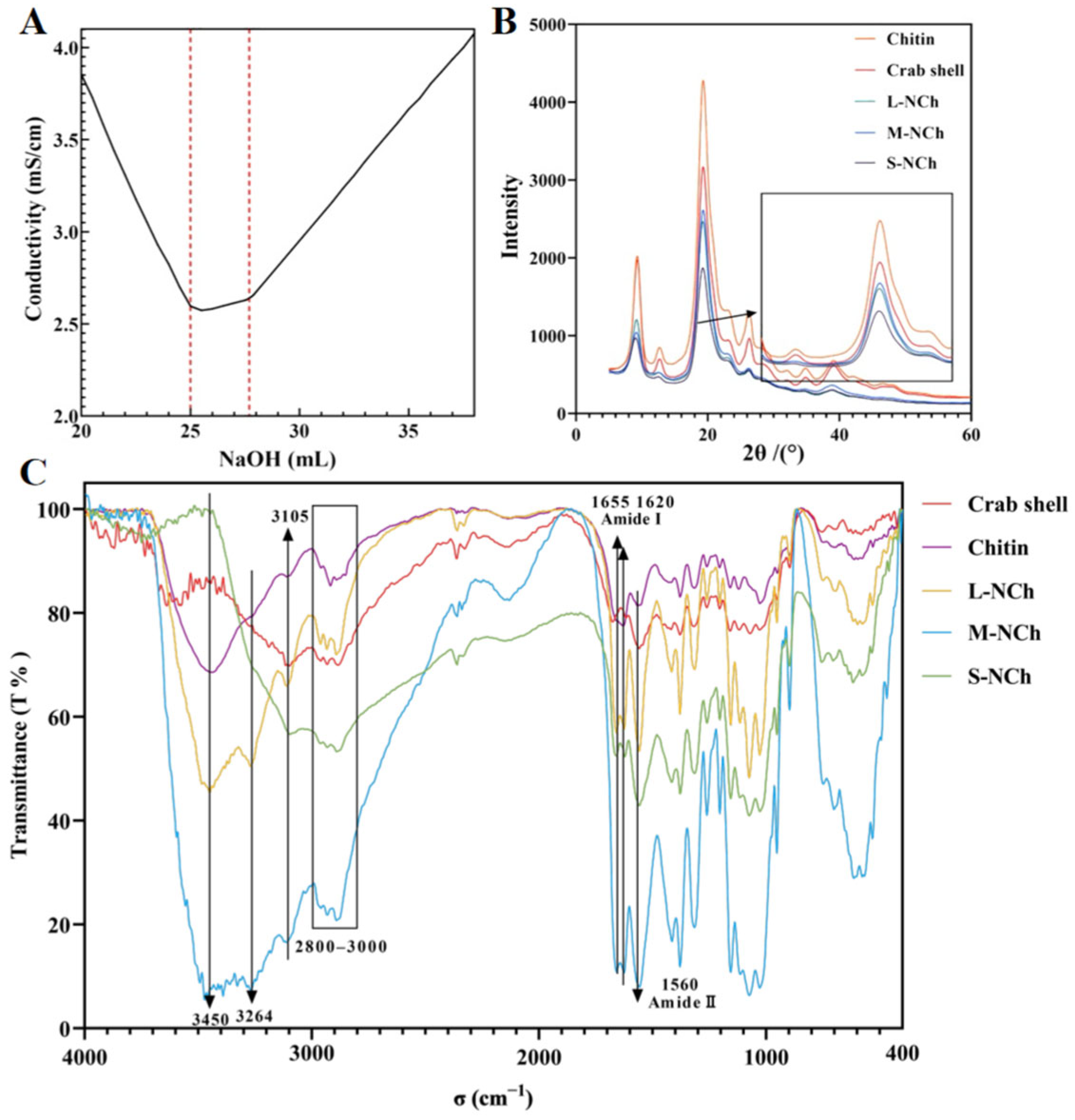 3.1. Deacetylation Degree (DD) of Chitin