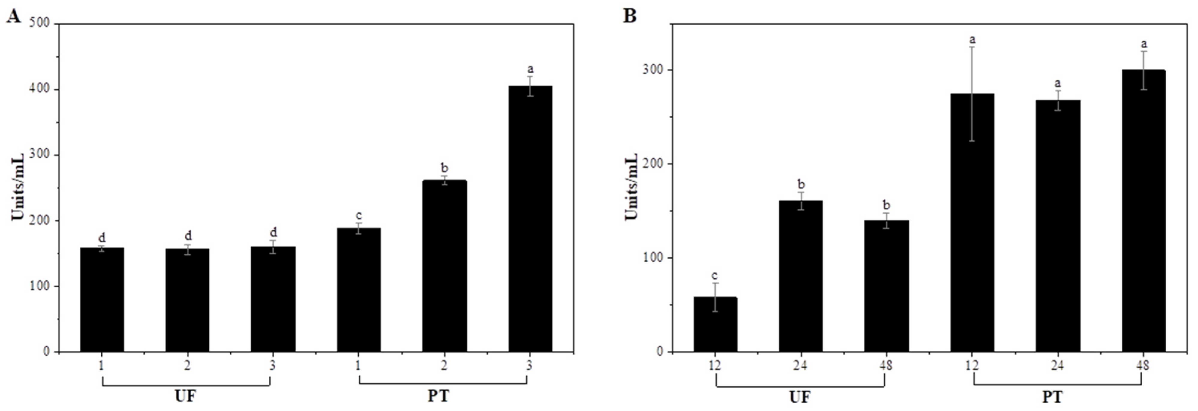 2.2. Optimization of Enzyme Concentration and Treatment Time