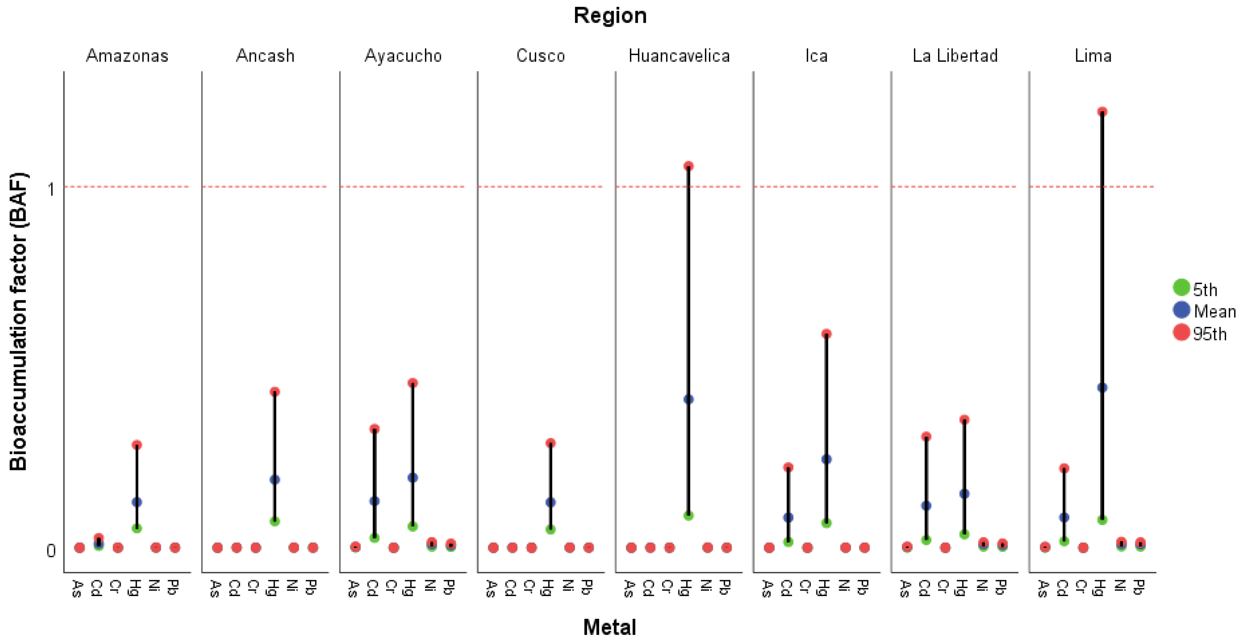 | Huancavelica | Mean–S.D. | <LOD | <LOD | <LOD | 0.011 ± 0.003 a | <LOD | <LOD |