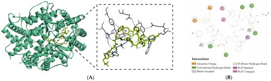 The RJP-derived peptides were virtually screened based on their predicted bioactivity, toxicity, water solubility, and human intestinal absorption (HIA), with the aim of identifying ACE-inhibitory candidates suitable for functional food and healthcare applications. The predicted bioactivities of the peptides were evaluated using the PeptideRanker tool (http://distilldeep.ucd.ie/PeptideRanker/ (accessed on 10 July 2024)), with peptides exhibiting scores > 0.8 considered bioactive candidates [24]. The water solubility of the selected peptides was further assessed using the Peptide Property Calculator (http://www.innovagen.com/proteomics-tools (accessed on 11 July 2024)). In addition, key physicochemical parameters, such as molecular weight, isoelectric point (pI), and net charge at physiological pH 7.0, were also determined to support peptide selection. The toxicity of the selected peptides was predicted using the ToxinPred server (http://webs.iiitd.edu.in/raghava/toxinpred/ (accessed on 15 July 2024)) [25]. The ADMET profiles, including HIA, blood–brain barrier (BBB) penetration, and cytochrome P450 (CYP450) 2D6 interaction, were analyzed using the admetSAR 2.0 platform (http://lmmd.ecust.edu.cn/admetsar2/ (accessed on 15 July 2024)) [26].