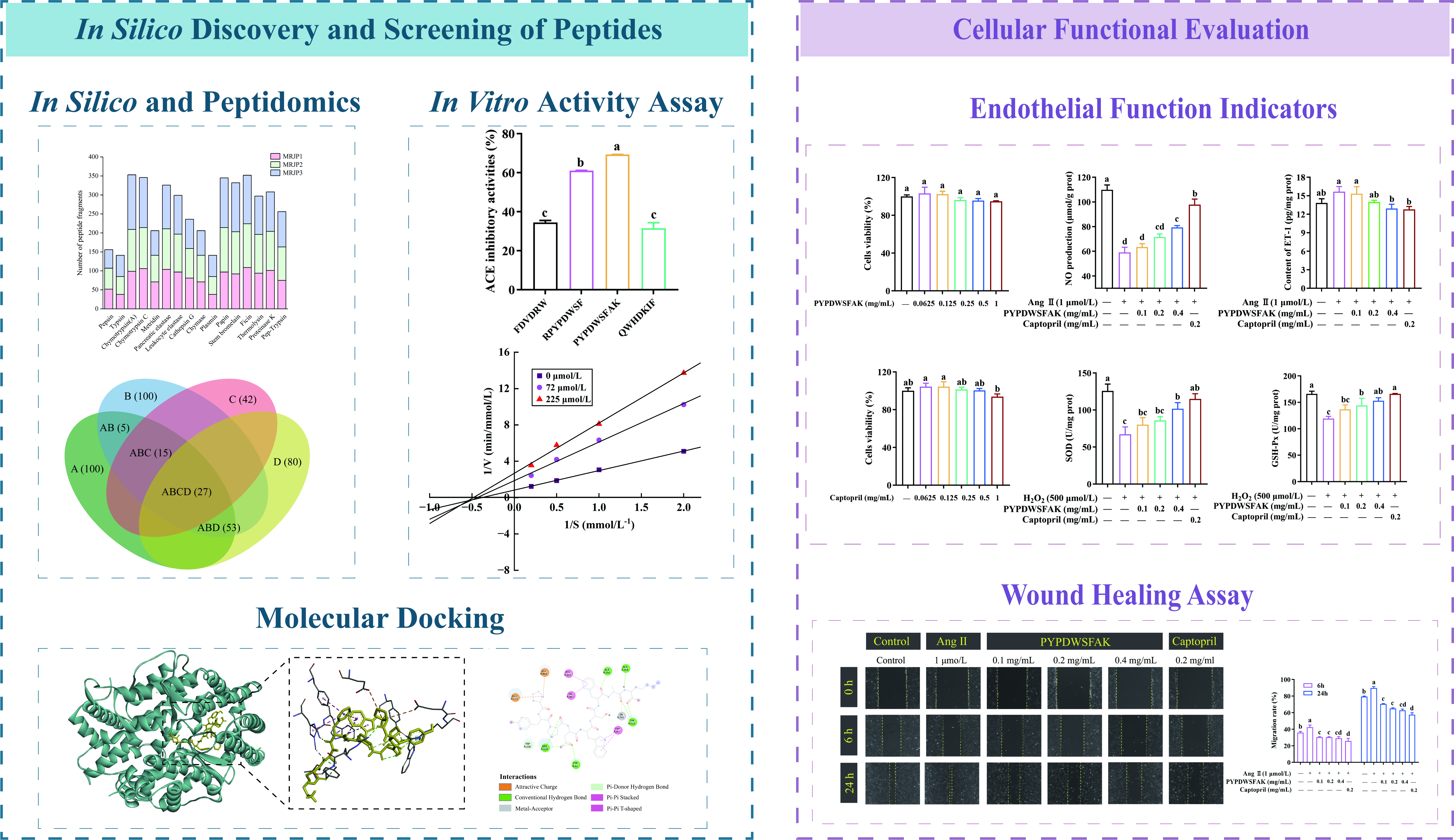 Chicago/Turabian StyleYang, Wanyu, Xinyu Zou, Tianrong Zhang, Qingqing Liu, Ziyan Liu, Fan Li, Yuhong Luo, Yiwen Wang, Zhijun Qiu, and Bin Zhang. 2026. "Novel ACE-Inhibitory Peptides from Royal Jelly Proteins: Comprehensive Screening, Mechanistic Insights, and Endothelial Protection" Foods 15, no. 1: 84. https://doi.org/10.3390/foods15010084