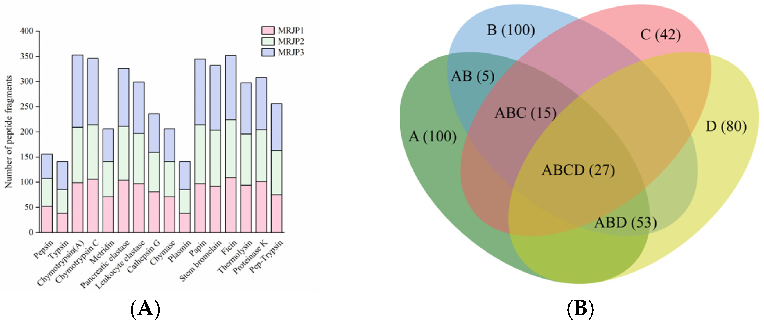 2.3. Virtual Screening of the Peptides from the in Silico Digests of RJPs