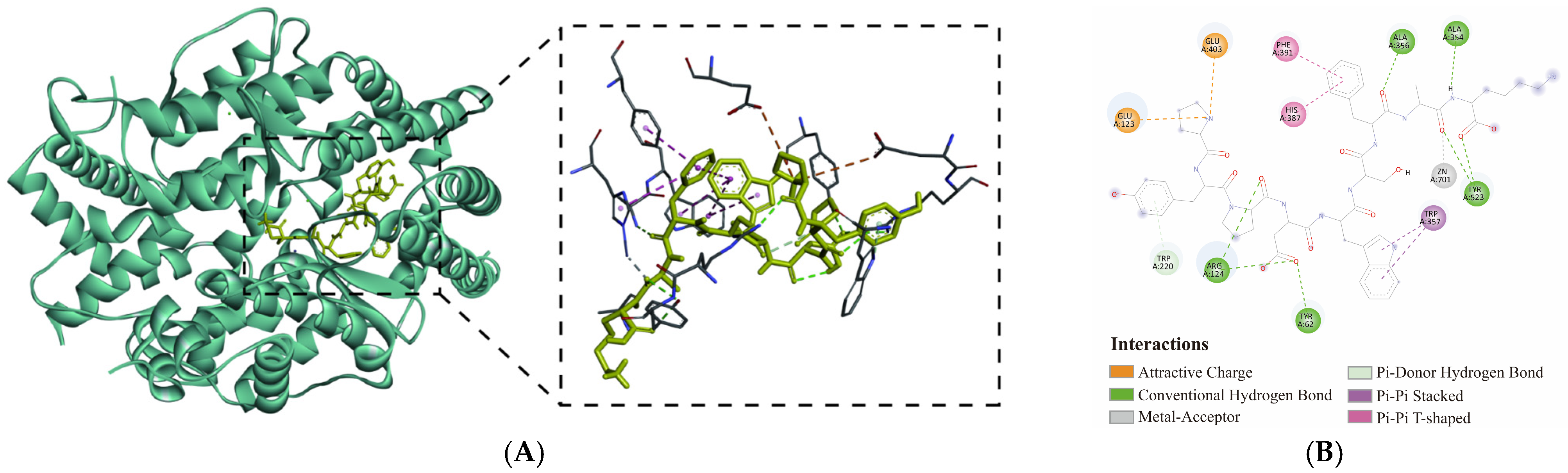 3.5. Docking Conformation of PYPDWSFAK-ACE Complex