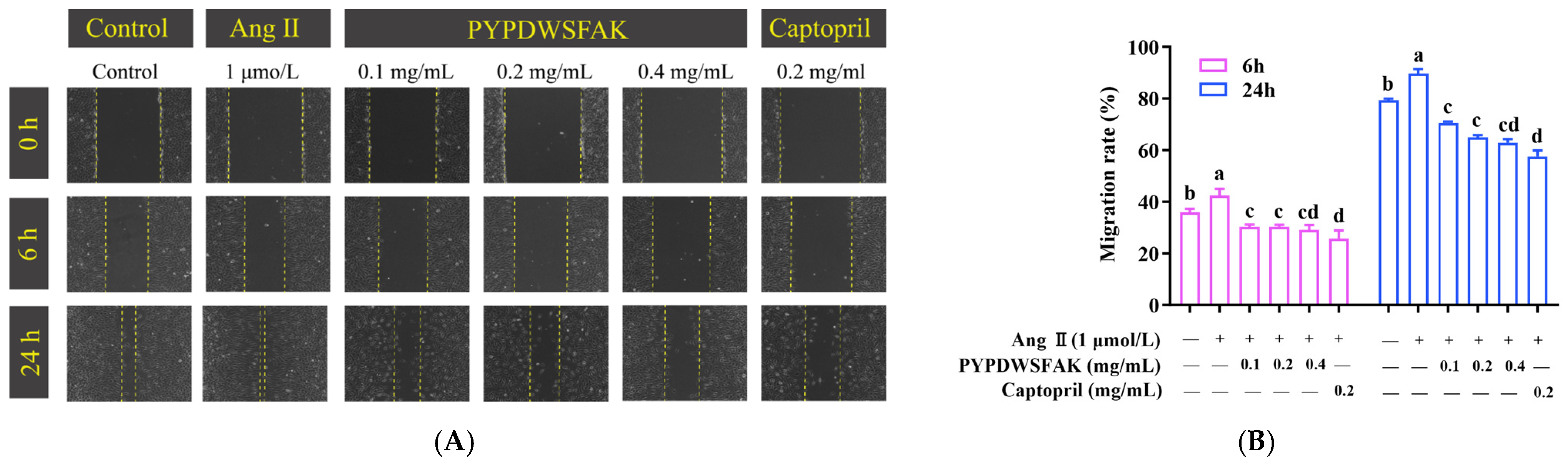 3.7. Effect of PYPDWSFAK on EA.hy926 Cell Migration