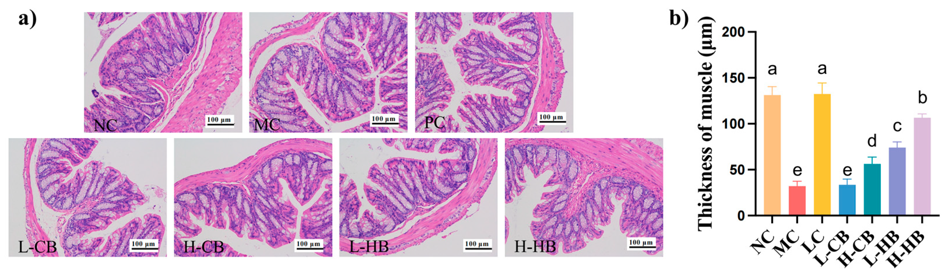 3.5. Effects of CBLs and HBLs on Colon Histological Morphology