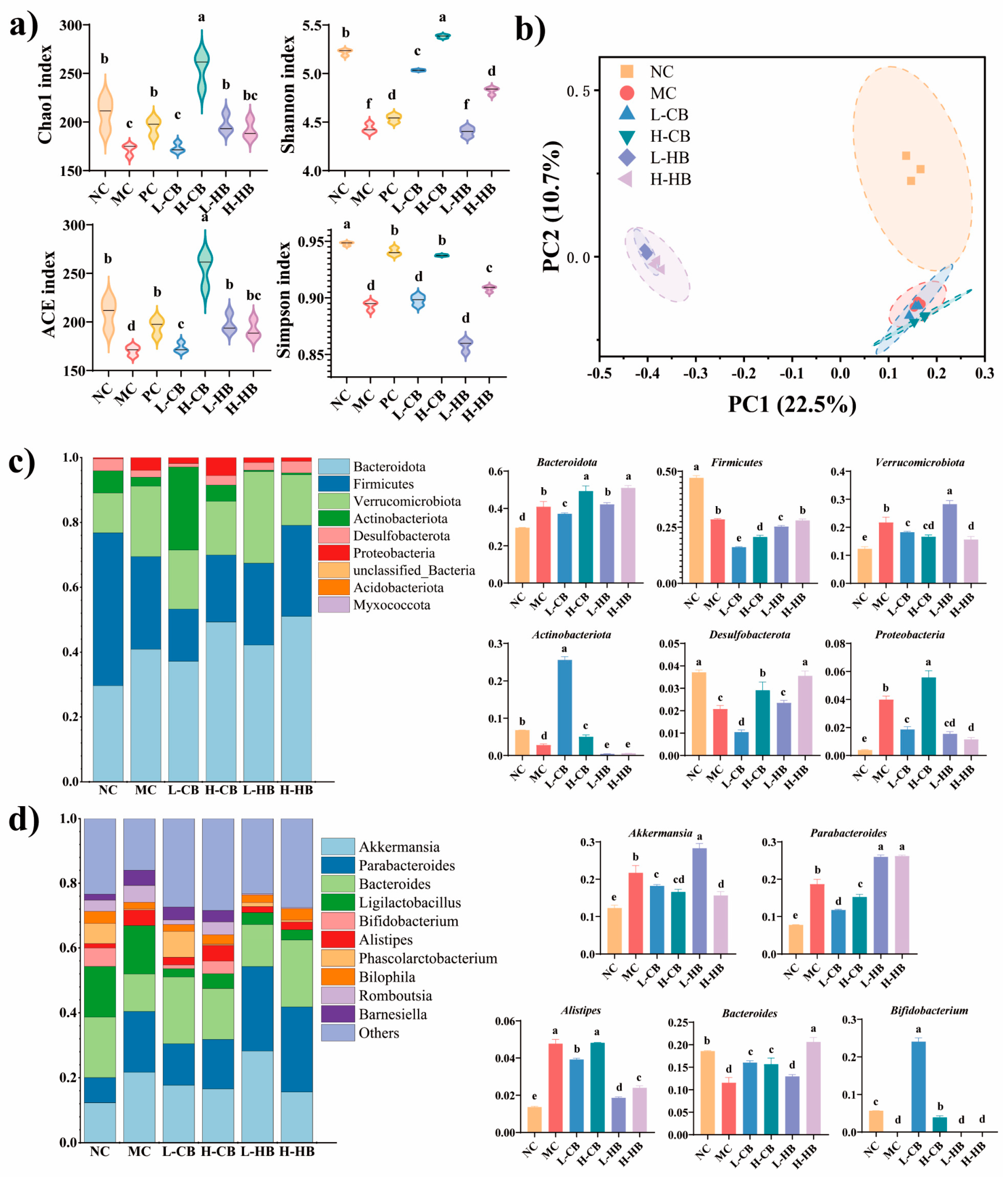 3.6. Effects of CBLs and HBLs on the Diversity of Fecal Microbiota