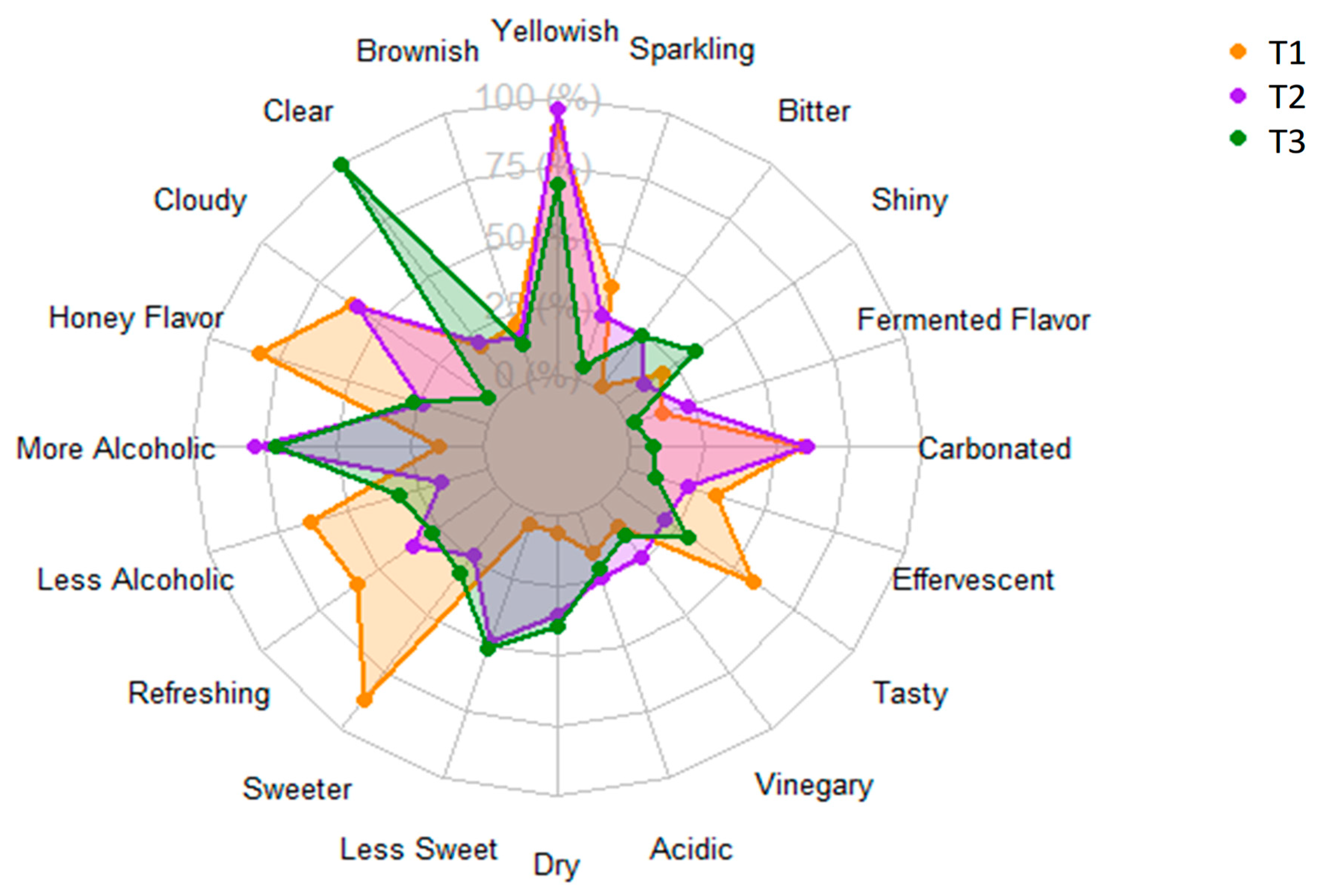 - Gorman, M.; Stright, A.; Baxter, L.; Moss, R.; McSweeney, M.B. An Analysis of Consumer Perception, Emotional Responses, and Beliefs about Mead. Int. J. Food Sci. Technol. 2024, 59, 7426–7435. [Google Scholar] [CrossRef]