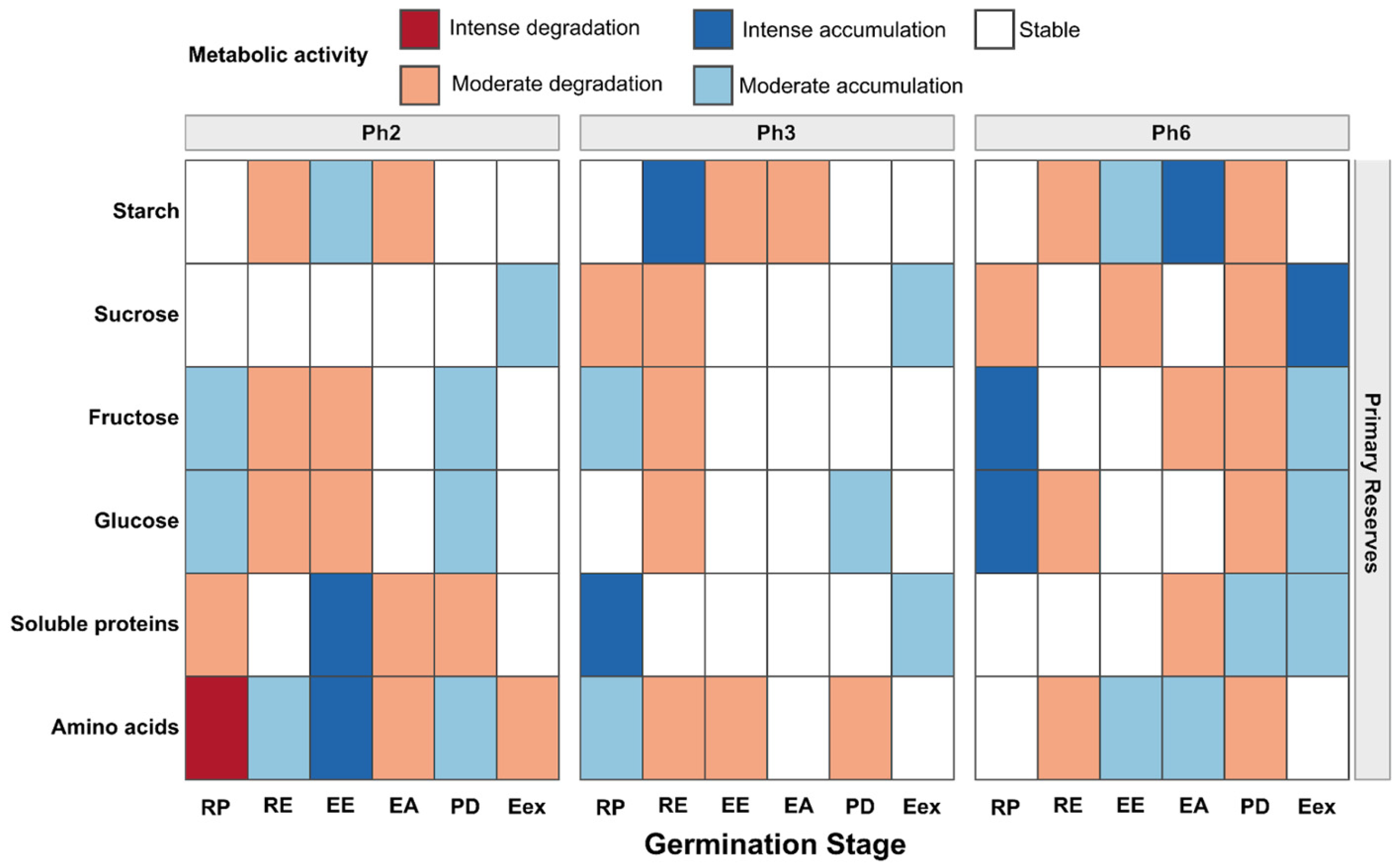 - Zhao, M.; Zhang, H.; Yan, H.; Qiu, L.; Baskin, C.C. Mobilization and Role of Starch, Protein, and Fat Reserves during Seed Germination of Six Wild Grassland Species. Front. Plant Sci. 2018, 9, 234. [Google Scholar] [CrossRef]