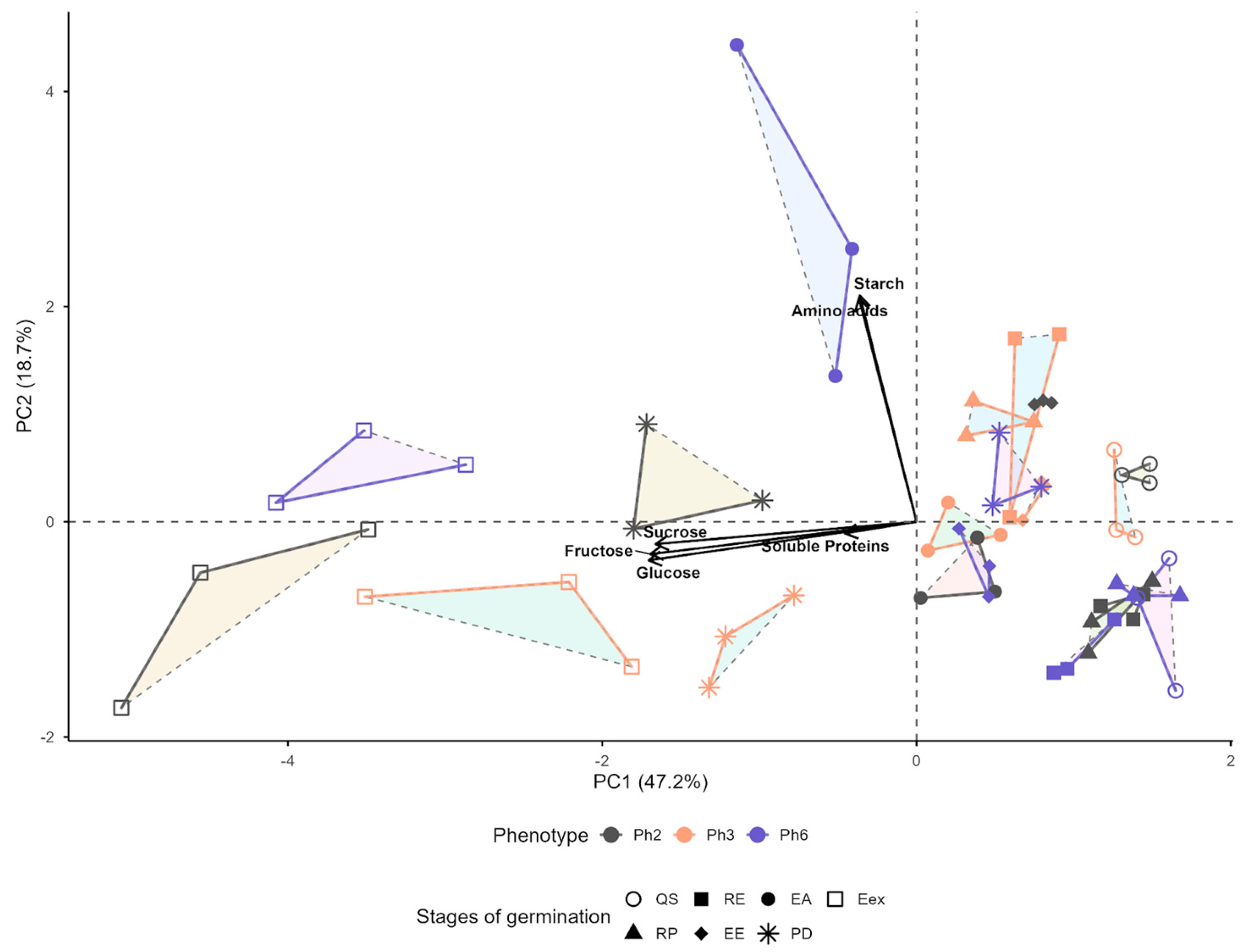 - Szablińska-Piernik, J.; Lahuta, L.B. Changes in Polar Metabolites during Seed Germination and Early Seedling Development of Pea, Cucumber, and Wheat. Agriculture 2023, 13, 2278. [Google Scholar] [CrossRef]