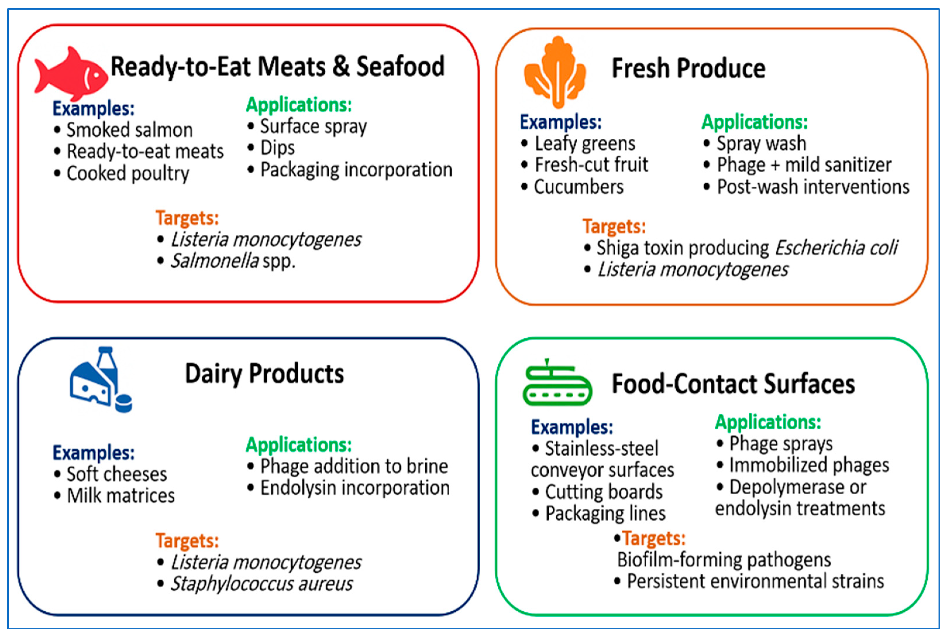 - Imran, A.; Shehzadi, U.; Islam, F.; Afzaal, M.; Ali, R.; Ali, Y.A.; Chauhan, A.; Biswas, S.; Khurshid, S.; Usman, I. Bacteriophages and food safety: An updated overview. Food Sci. Nutr. 2023, 11, 3621–3630. [Google Scholar] [CrossRef]