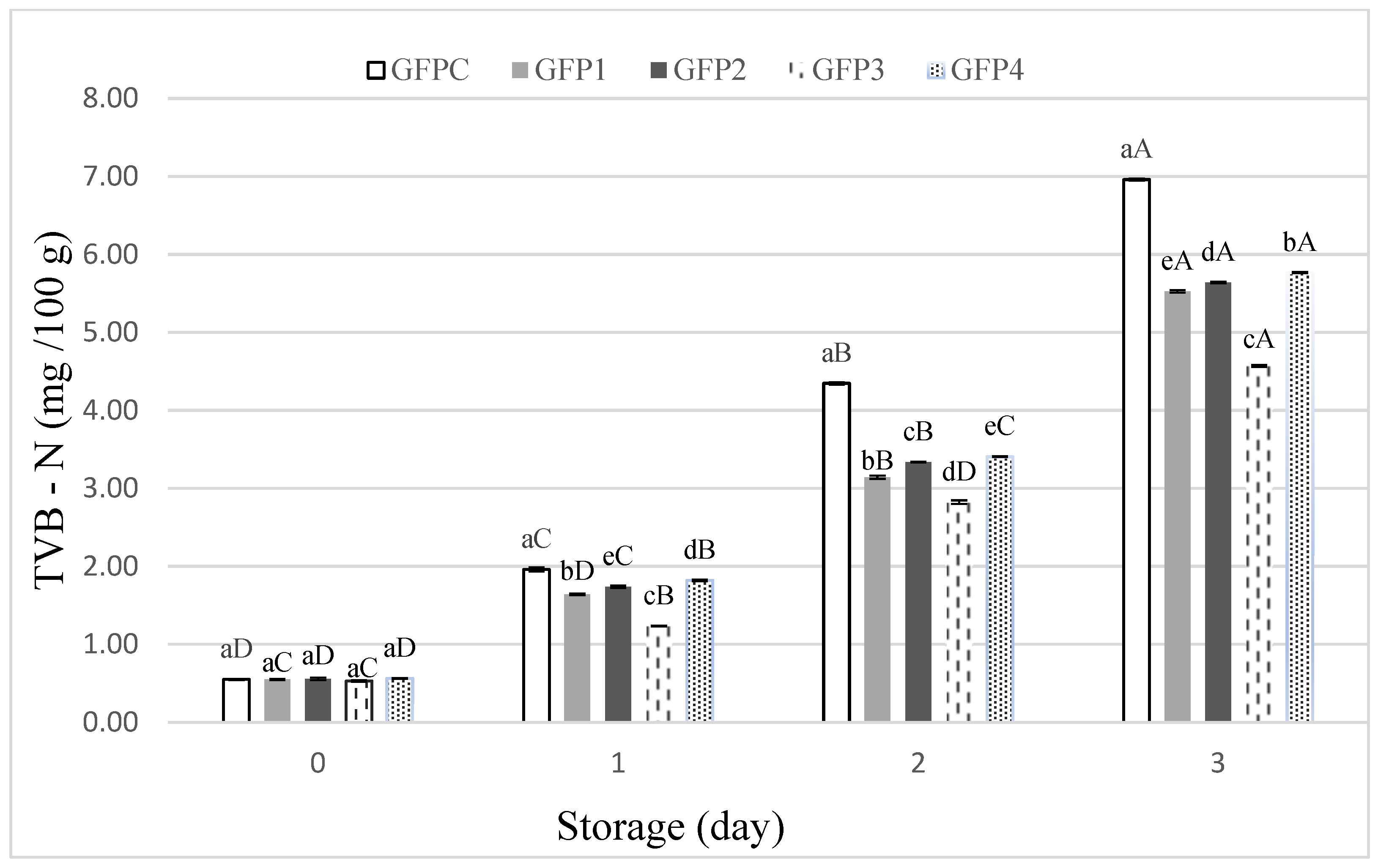 | Storage day | Treatments | ||||