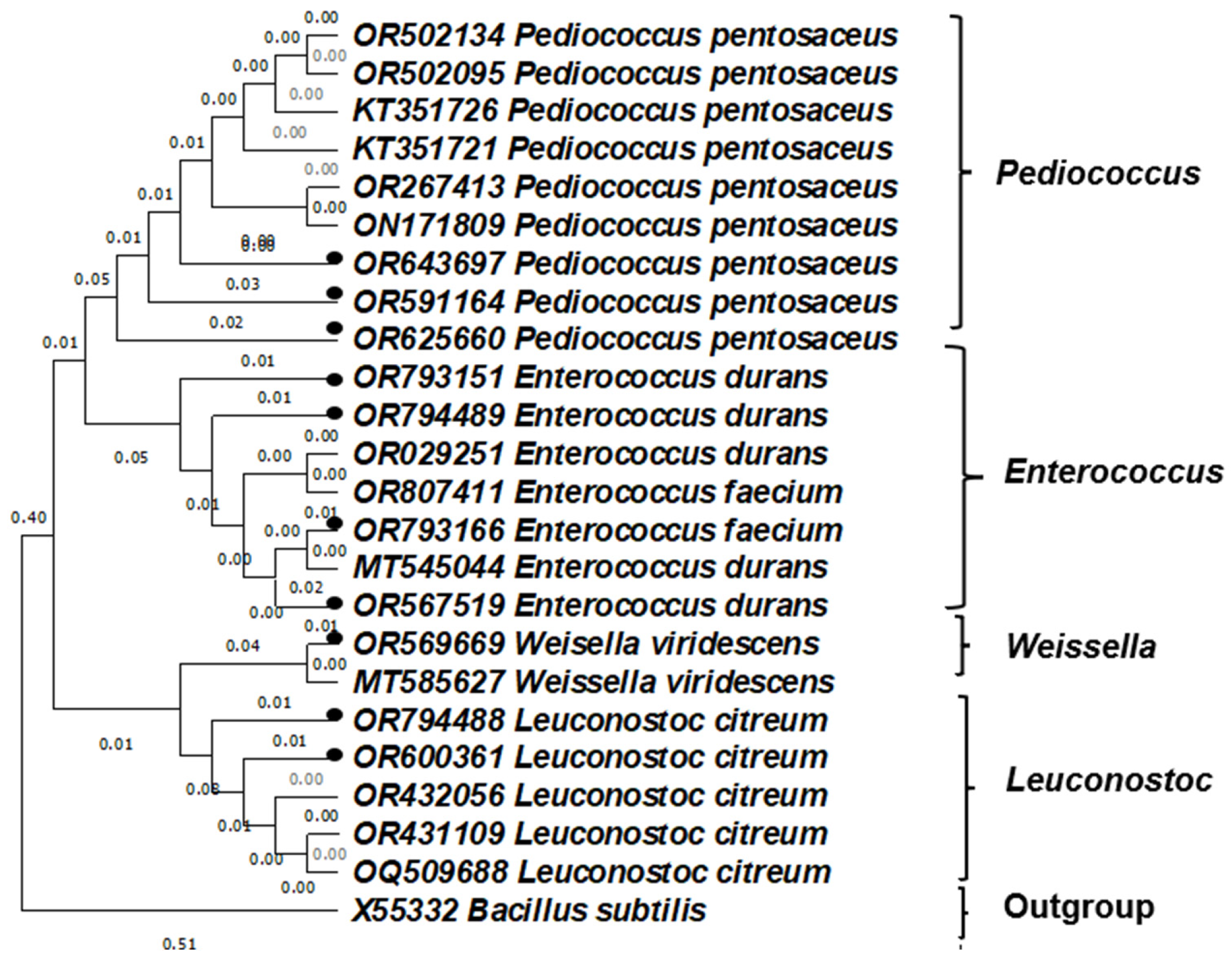 | 11 | A056M | Pediococcus pentosaceus | 95 | OR591164.1 |