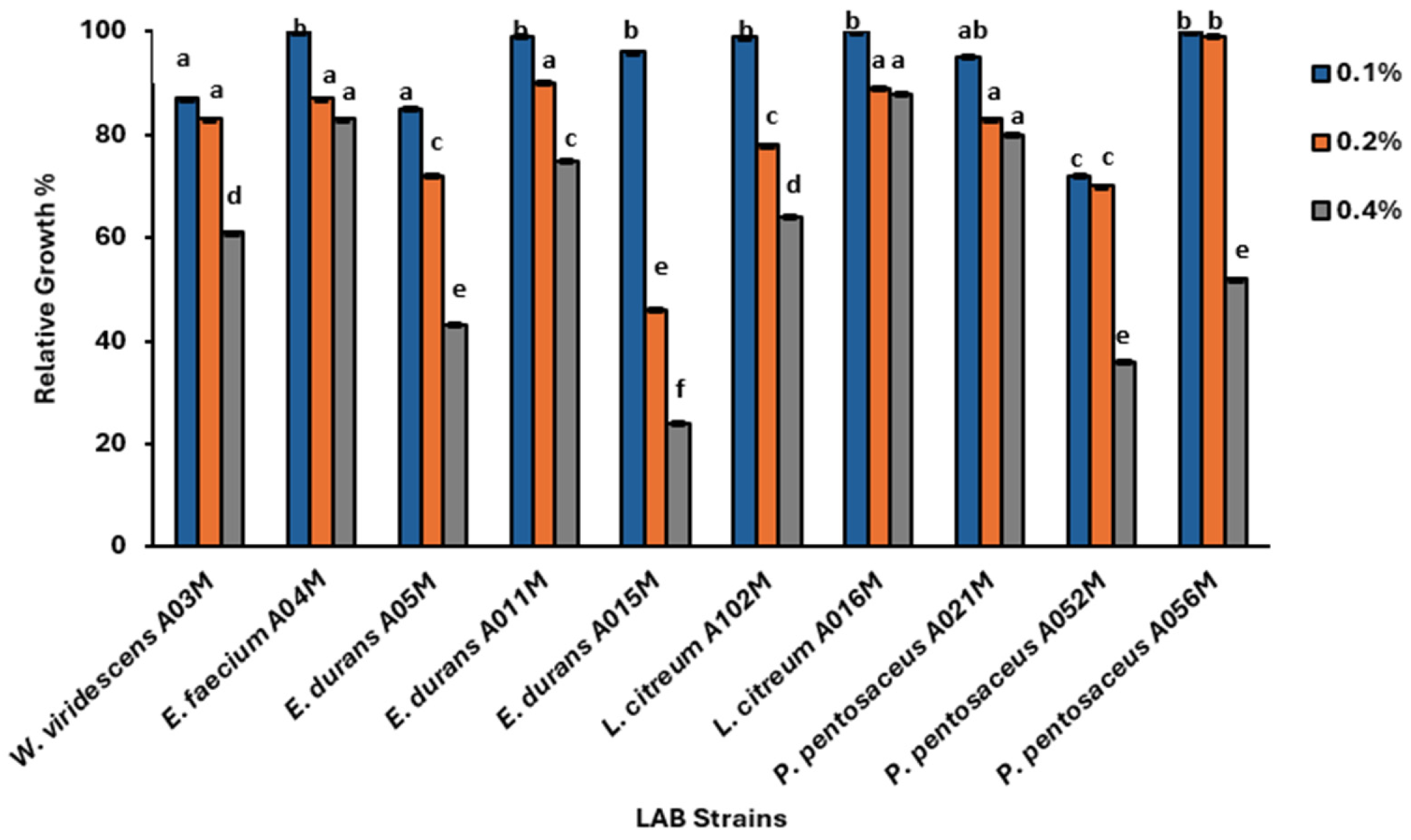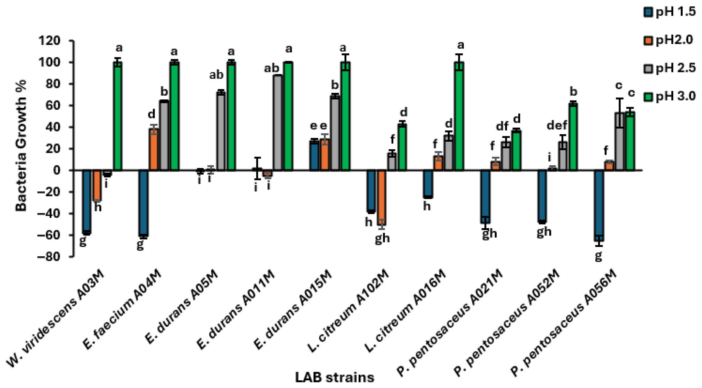 3.2.4. Susceptibility of the Isolated LAB Strains to Antibiotics