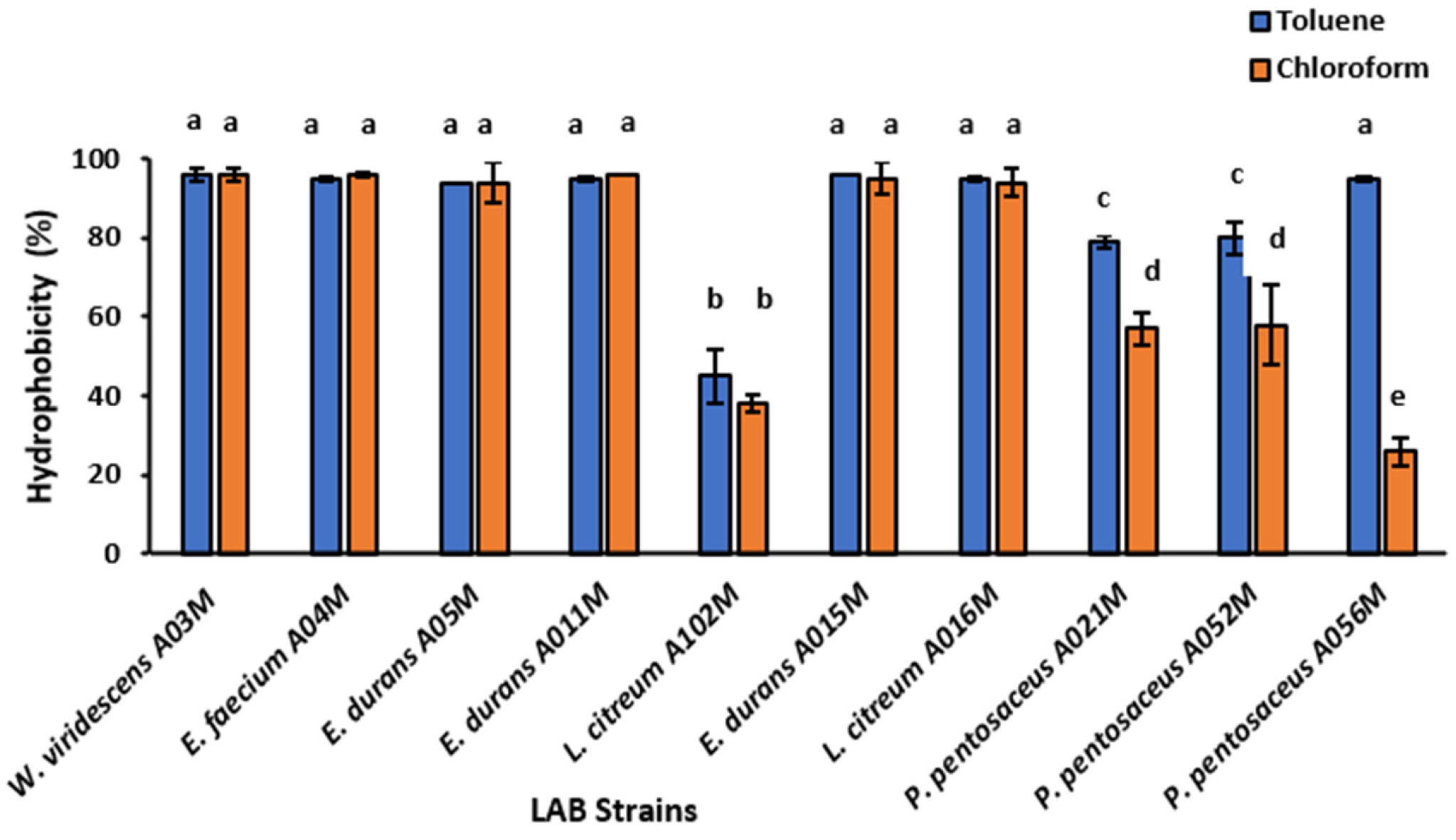 | P. pentosaceus OR794367.1 | 8.0 ± 1.4 a | 0 ± 0.0 | 6.0 ± 0.5 ac |