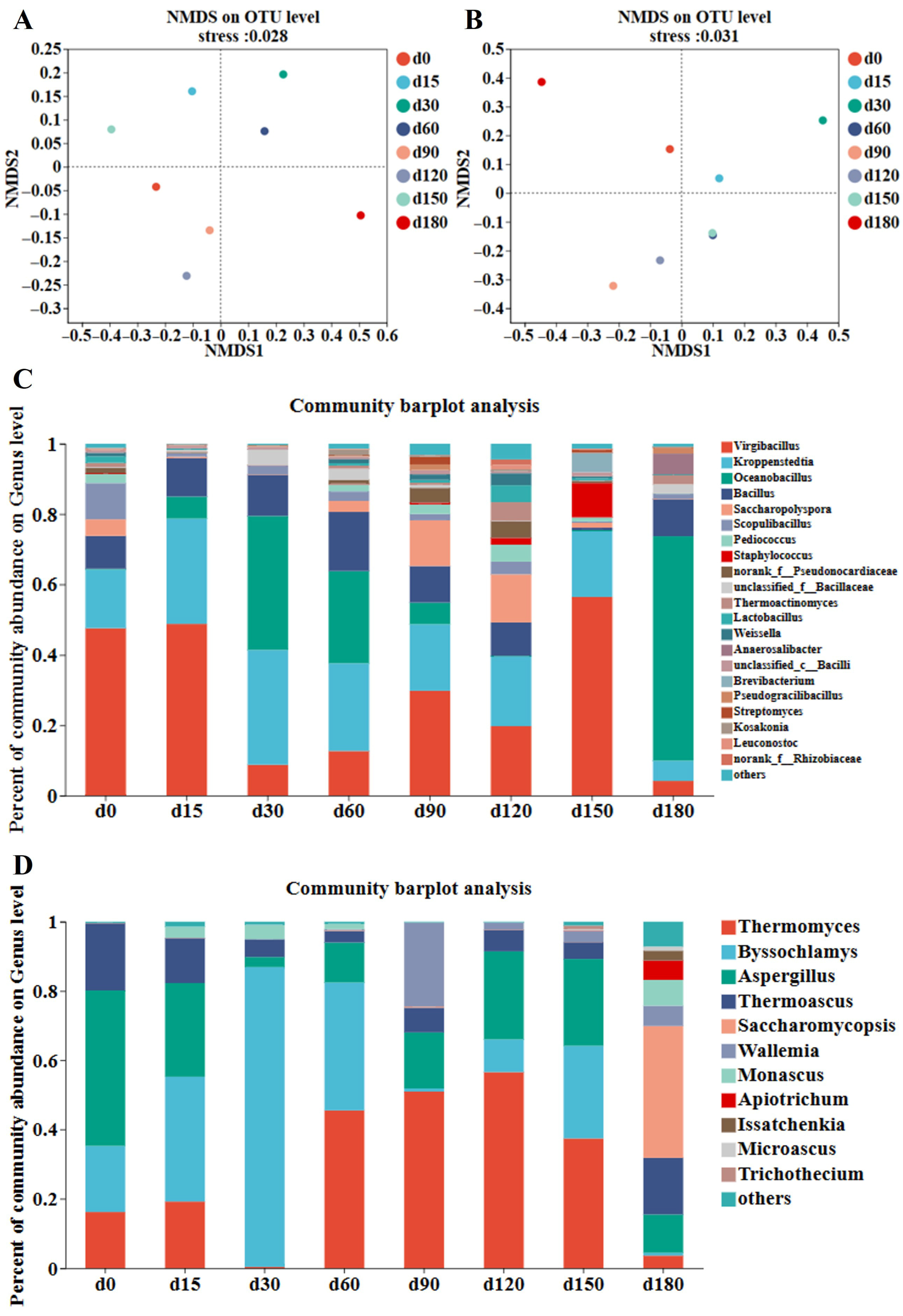 3.2. Microbial Community Diversity of Jiang-Flavor Daqu with Different Storage Periods