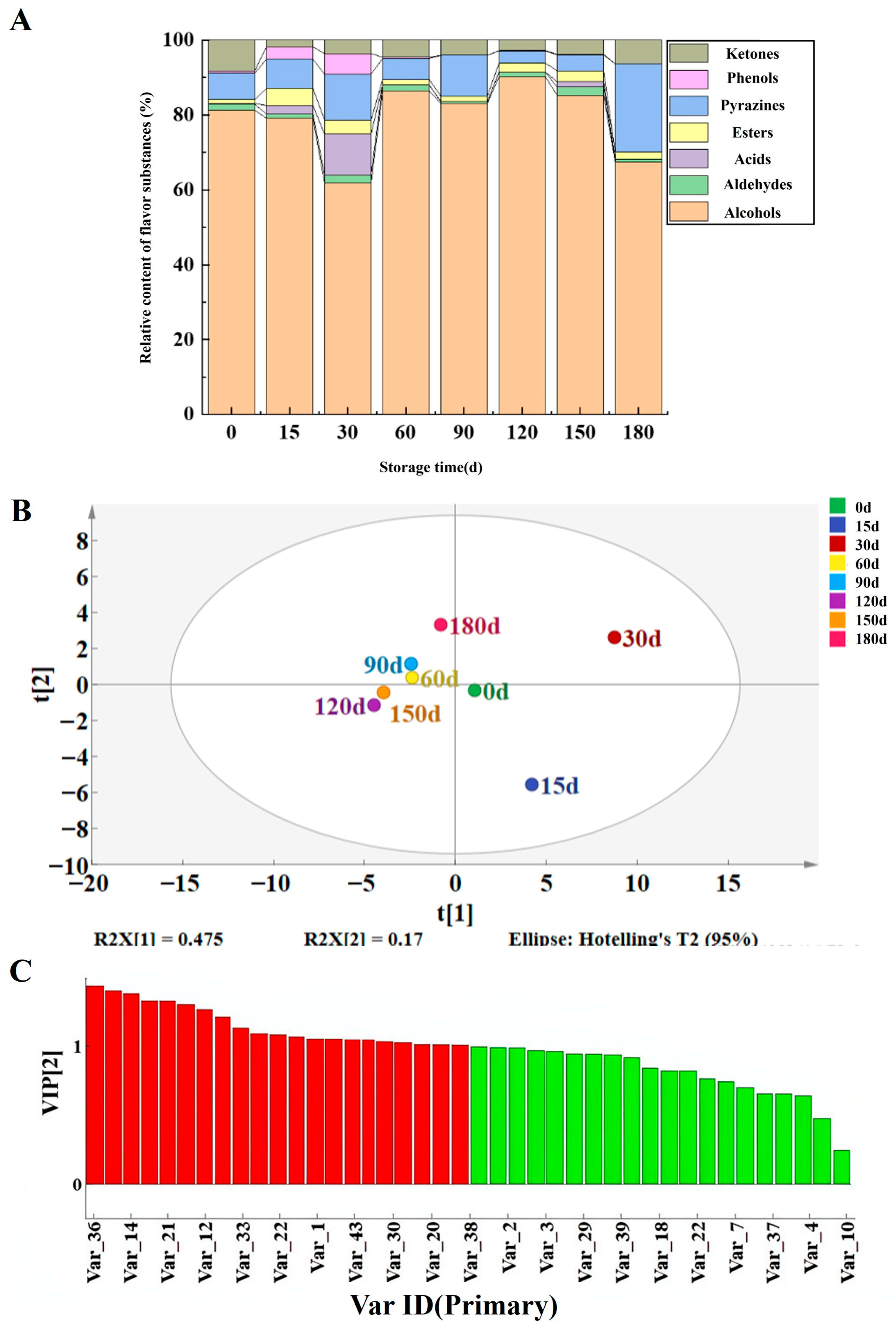 3.3. Volatile Flavor Substances of Jiang-Flavor Daqu with Different Storage Periods