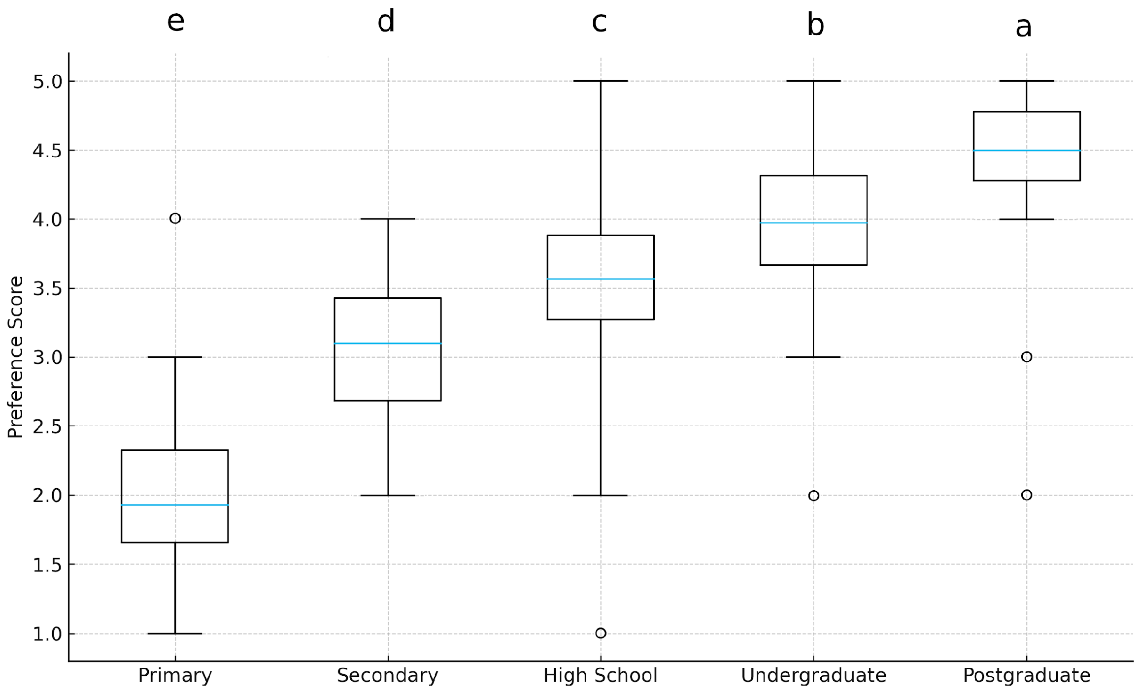 | H6 (Income × Education) | Mann–Whitney U | - | U = 5921 | 0.041 | Cliff’s δ = 0.24 |