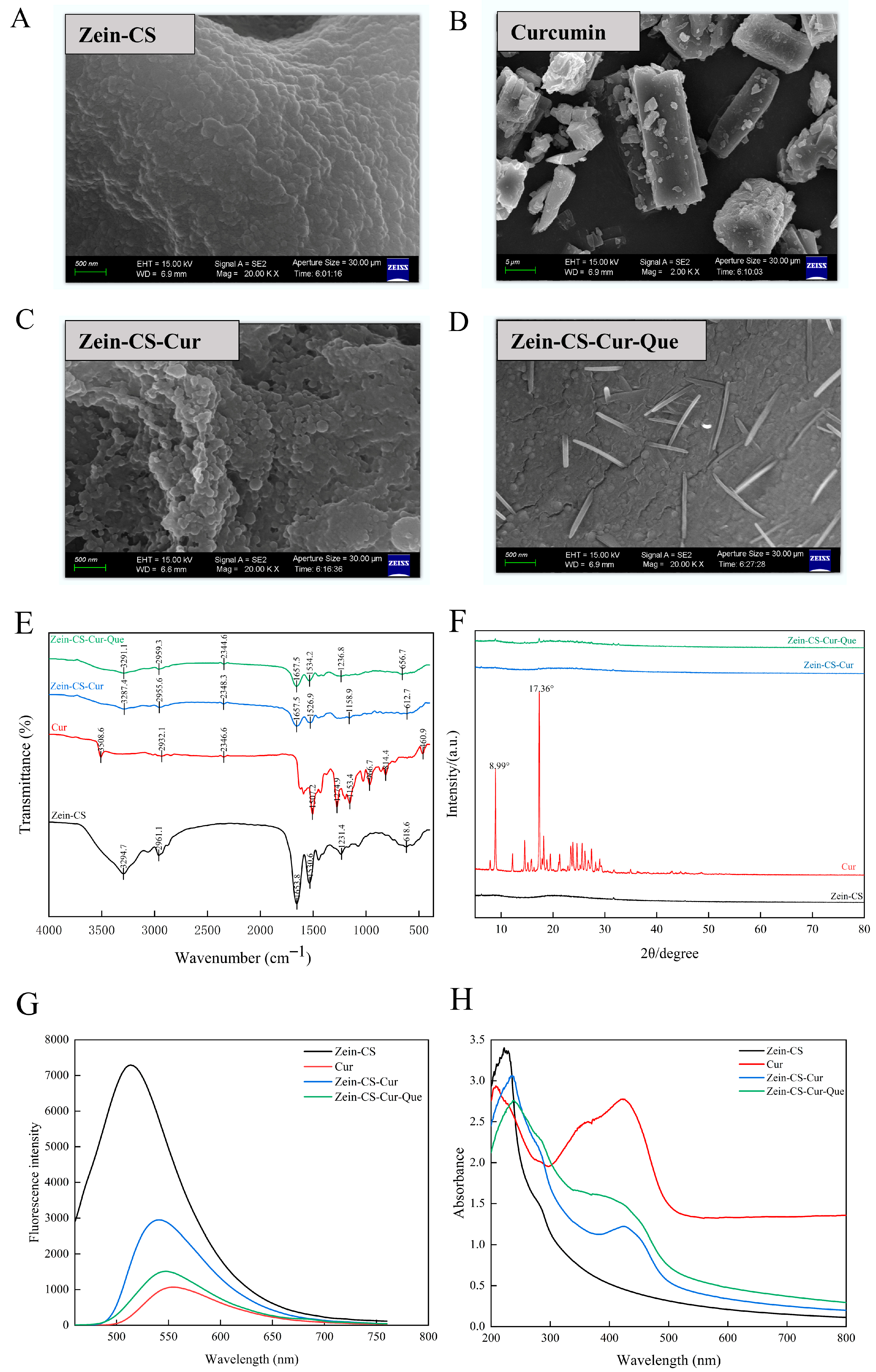 - Li, H.; Wang, D.; Liu, C.; Zhu, J.; Fan, M.; Sun, X.; Wang, T.; Xu, Y.; Cao, Y. Fabrication of stable zein nanoparticles coated with soluble soybean polysaccharide for encapsulation of quercetin. Food Hydrocoll. 2019, 87, 342–351. [Google Scholar] [CrossRef]