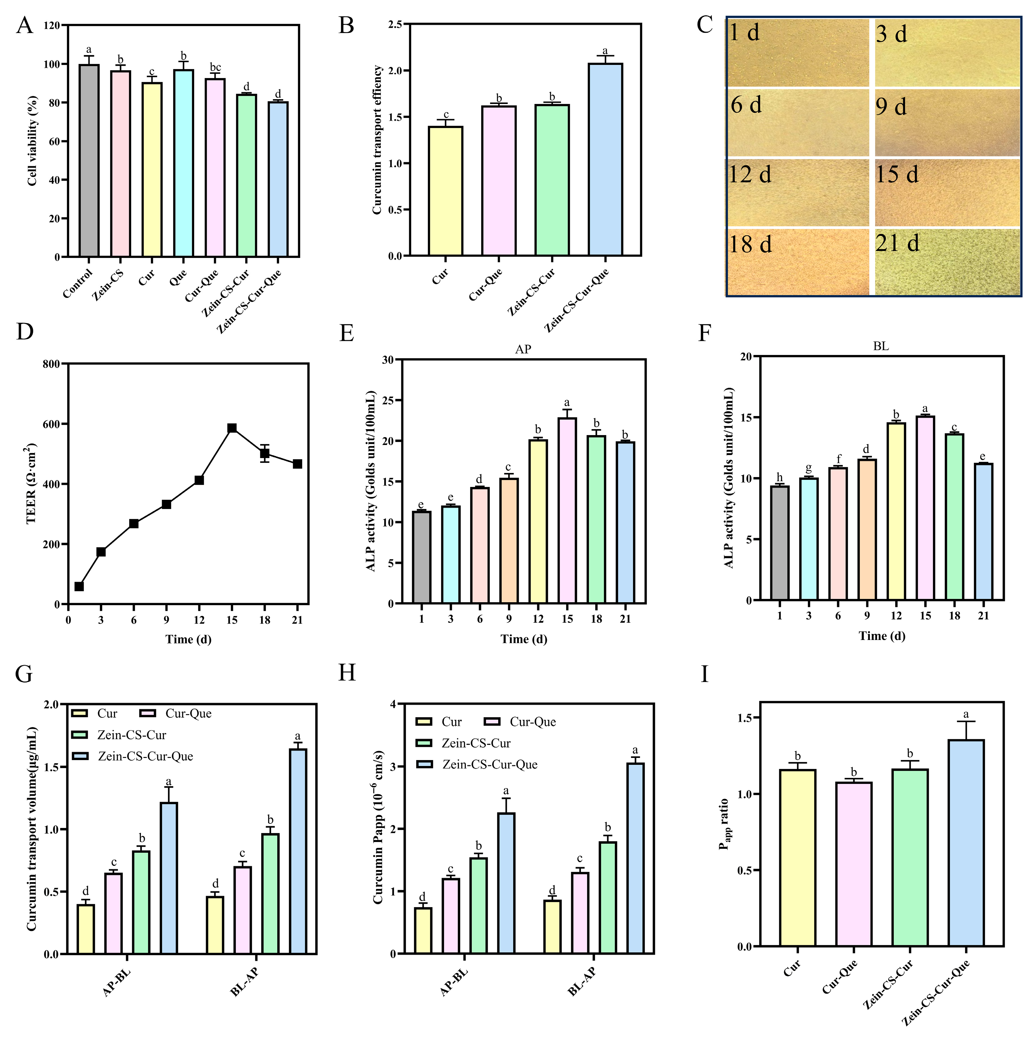 3.12. Cytotoxicity Assay, Cellular Uptake, and Cell Monolayer Modeling of Zein-CS-Cur and Zein-CS-Cur-Que