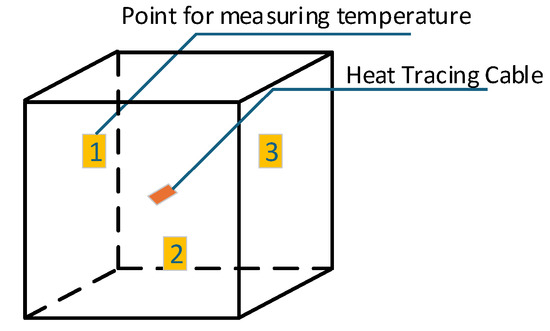 (2) Enhancement of insulation performance using cotton interlayers: A composite insulation structure was constructed by inserting cotton layers between adjacent CO2-filled gas-inflated membranes, forming a cotton-filled gas-inflated membrane cold storage system (CF-GIMCS). This system and a conventional cold storage unit with identical geometry were placed in a temperature-controlled refrigeration chamber. As illustrated in Figure 1, a 2.5 m heating cable was centrally installed and fixed inside each cold storage unit. Three temperature monitoring points (labeled 1, 2, and 3) were positioned at identical locations in both systems. After the internal temperature stabilized at approximately 0 °C, continuous temperature data were recorded using a multi-point temperature measurement system. These data were used to calculate total thermal resistance, enabling a direct comparison of insulation performance under identical boundary conditions.