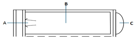 Heat-sealing process for membrane closure. A: the valve region; B: the central section; C: the tail sealing region.