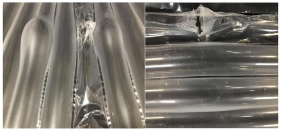 A wide variety of gas-inflated membrane materials is commercially available, offering different balances between mechanical performance and thermal stability. In the present study, membrane thicknesses ranged from 30 to 90 μm. The width of individual gas columns was 2–8 cm in the uninflated state and expanded to approximately 2–4 mm after inflation. The investigated PA/PE composition ratios were 25%/75%, 30%/70%, and 35%/65%, which are known to exert a significant influence on the physicochemical properties of the membrane. An increased PA content enhances mechanical strength, rigidity, and resistance to elevated temperatures but reduces flexibility and elongation. Conversely, higher PE content improves ductility and tensile extensibility at the expense of stiffness, strength, and thermal resistance [31]. Given these trade-offs, identifying an optimal membrane configuration is critical for achieving reliable mechanical performance while maintaining cost-effectiveness in cold storage applications. Therefore, membrane materials were systematically evaluated based on tensile properties, pressure-bearing capacity, and burst pressure behavior.
