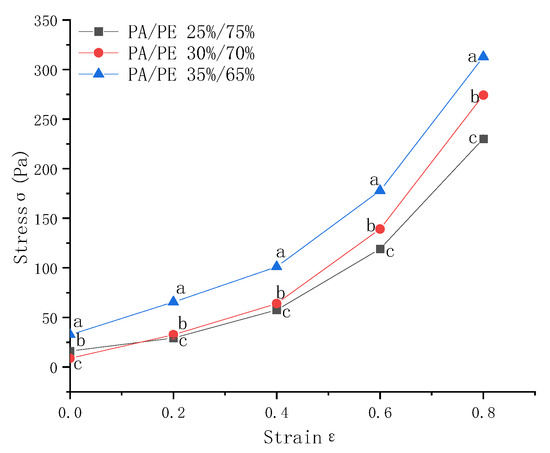 Gas-inflated membranes with a thickness of 70 μm and a gas column width of 2 cm were fabricated using three PA/PE composition ratios: 25%/75%, 30%/70%, and 35%/65%. Static compression resistance and heat-sealing performance tests were conducted, and the optimal PA/PE ratio was identified based on overall mechanical and processing performance.