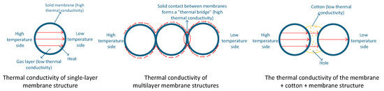 Thermal resistance of the gas-inflated membranes was measured using the guarded hot plate method with a VQ-300П (supplied by Beijing Jujinghong Automation Control Technology Co., Ltd. Beijing, China) thermal conductivity tester following the procedure described in Ref. [21].