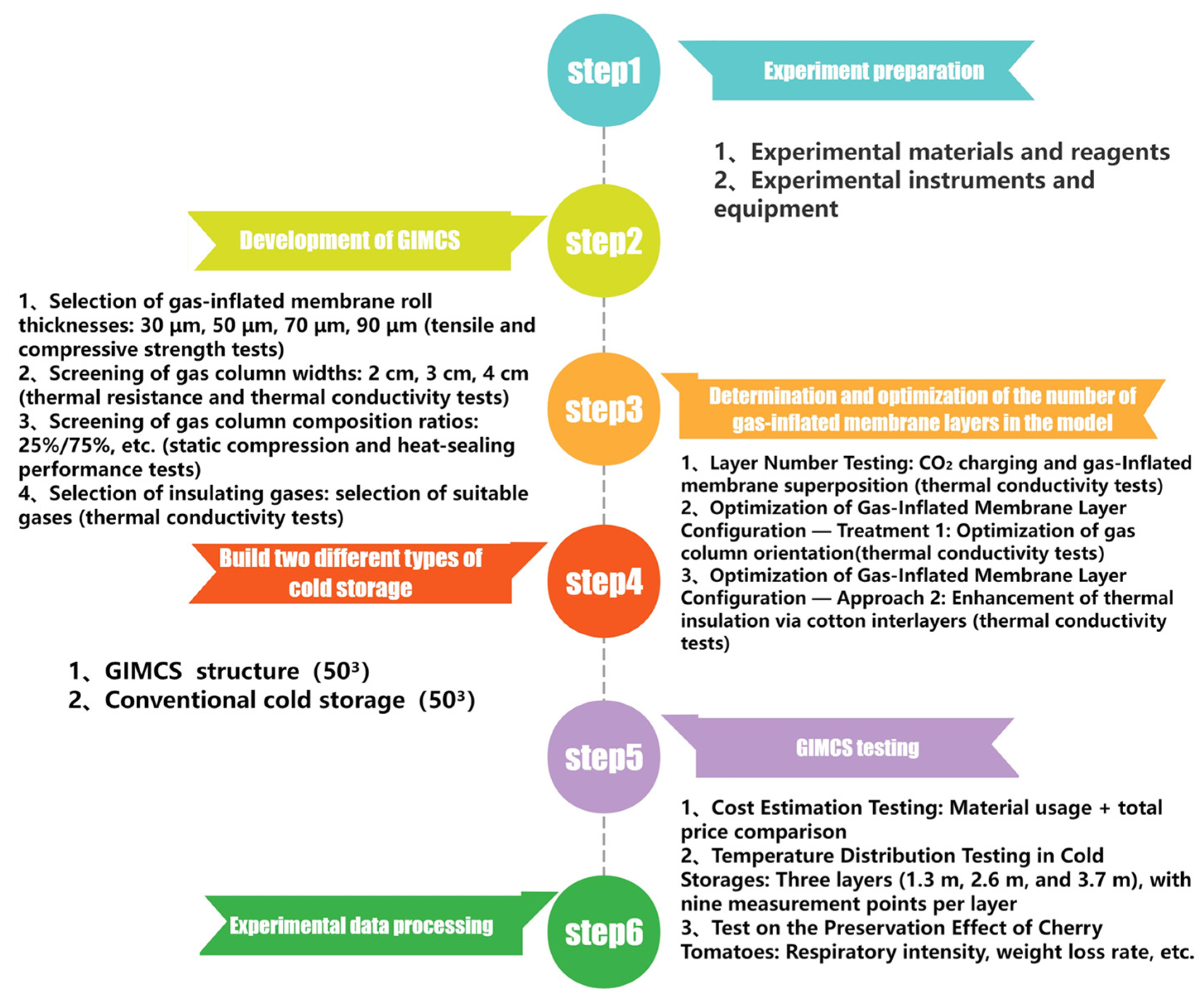 Duan, L.; Zhuo, X.; Su, J.; Qiu, X.; Li, L.; Li, W.; Liu, Y.; Li, X. The Development and Testing of a Temporary Small Cold Storage System: Gas-Inflated Membrane Cold Storage. Foods 2026, 15, 231. https://doi.org/10.3390/foods15020231