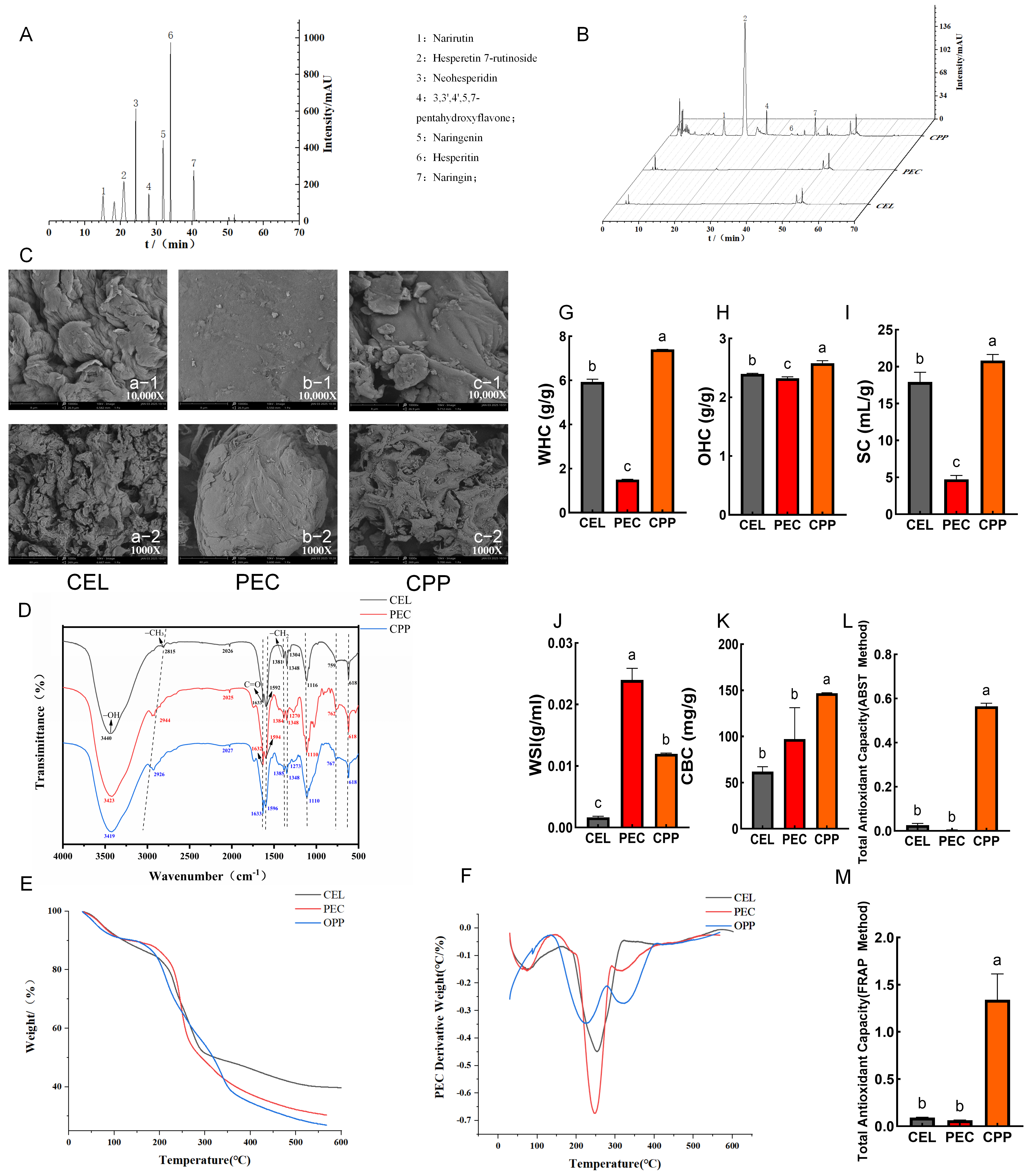 3.1. Study on the Composition, Structure, and Functional Properties of CEL, PEC, and CPP