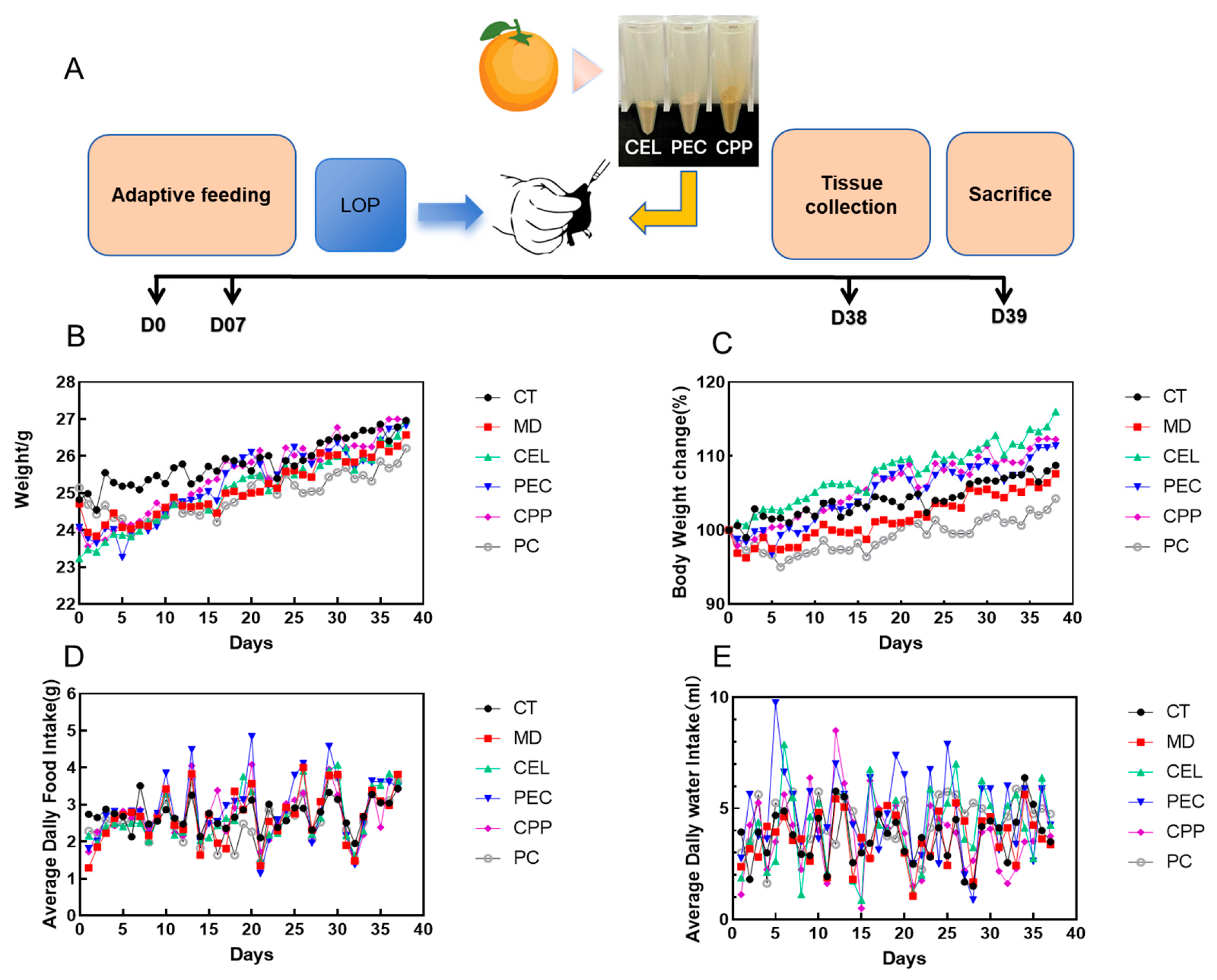 APA StyleYang, F., Wang, G., Huang, M., Liu, X., Tang, S., Li, W., Luo, Y., Bai, J., & Huang, L. (2026). Comparative Study of the Effectiveness of Cellulose, Pectin and Citrus Peel Powder in Alleviating Loperamide-Induced Constipation. Foods, 15(2), 240. https://doi.org/10.3390/foods15020240