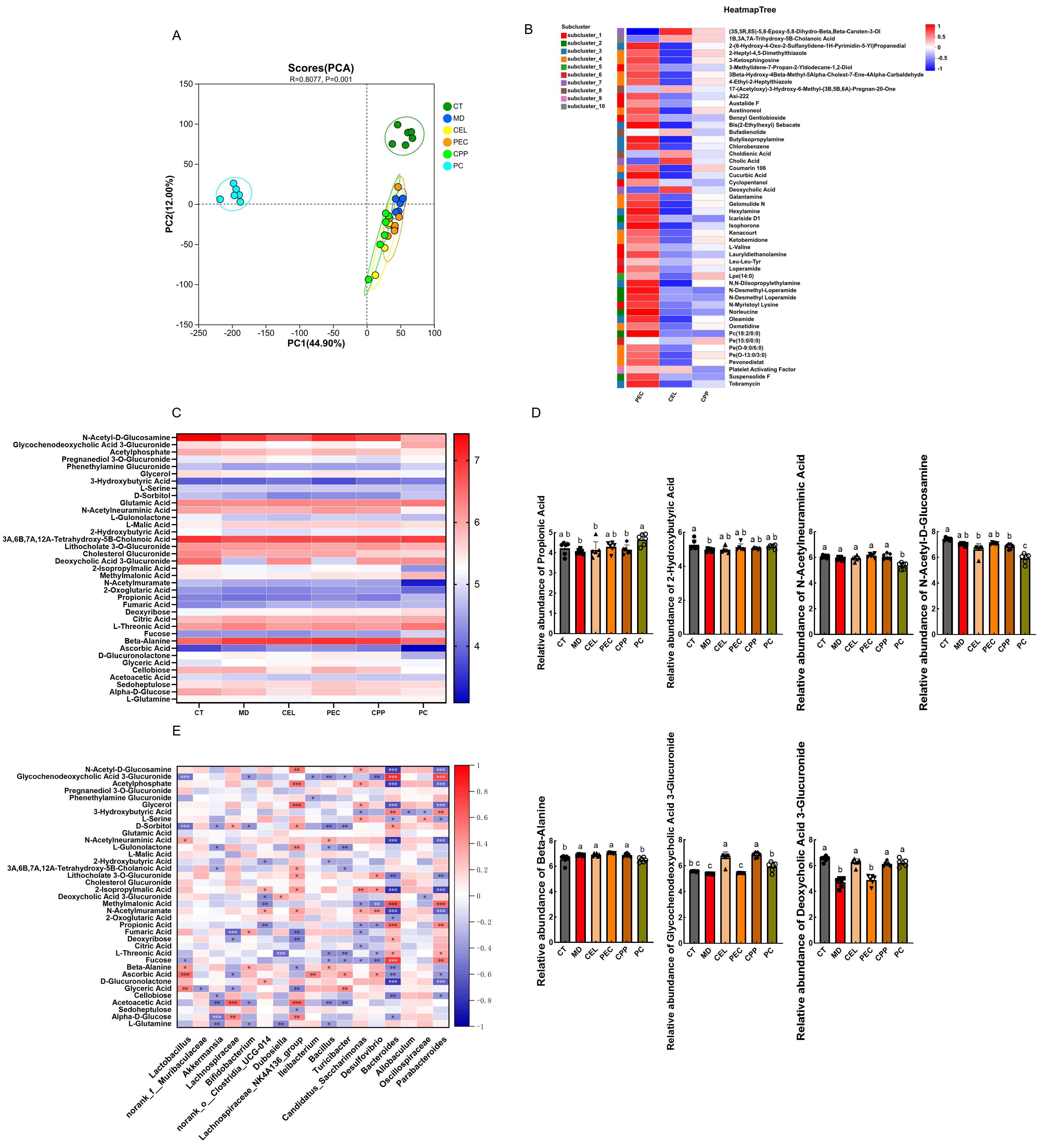3.7. Effects of CEL, PEC, and CPP on Mouse Metabolites