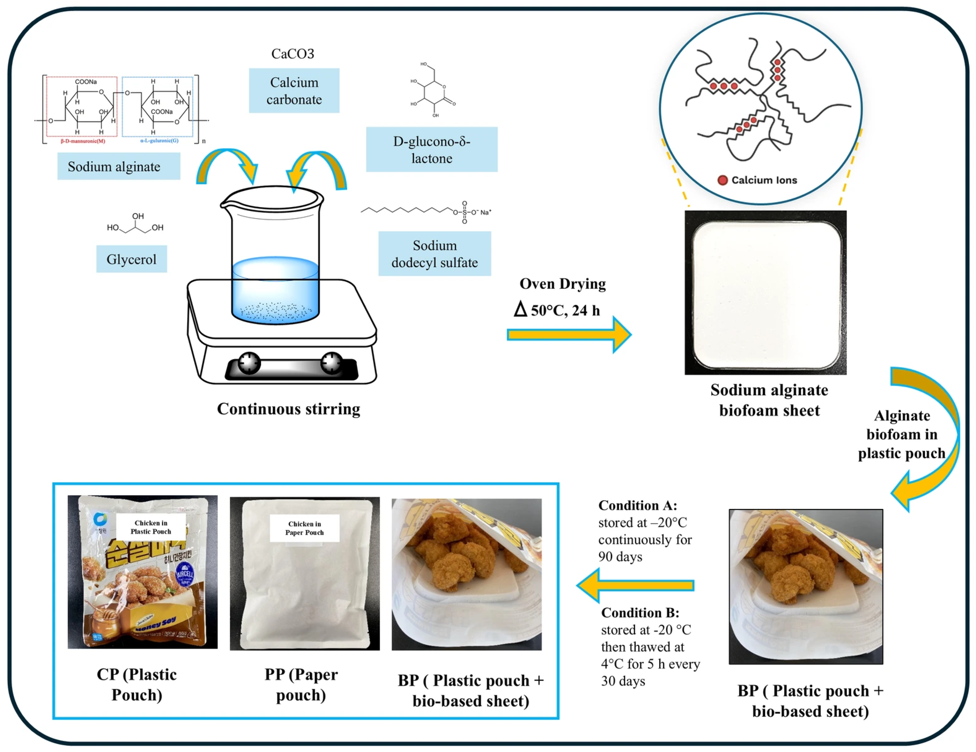 - Itkor, P.; Boonsiriwit, A.; Lee, M. Fabrication of novel sodium alginate-based biofoam and evaluation of its packaging cushion performance on banana fruit. J. Food Sci. 2025, 90, e70140. [Google Scholar] [CrossRef]