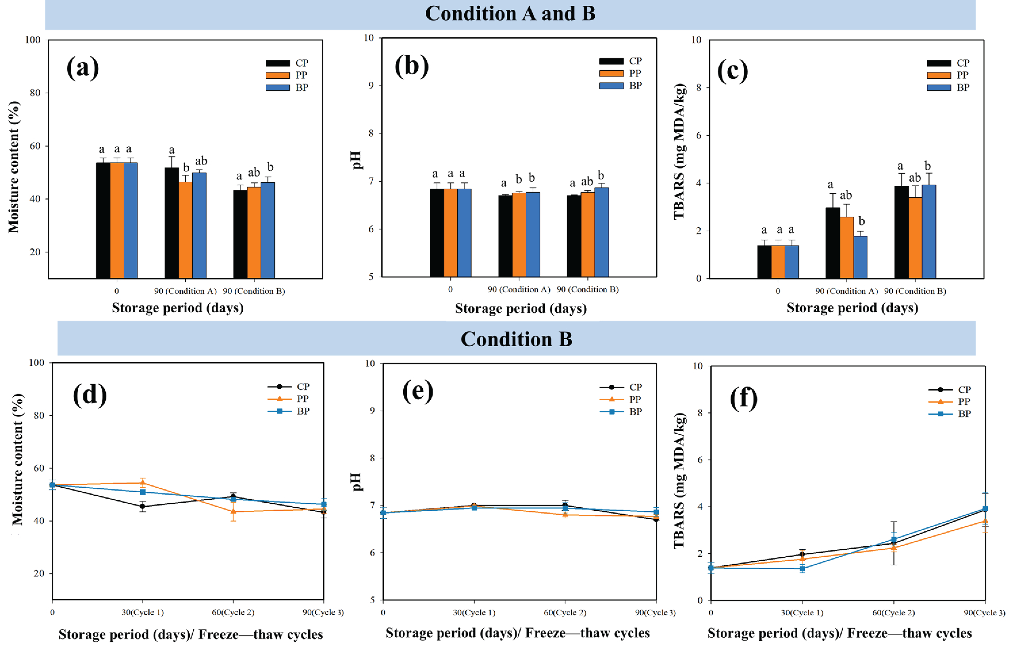 3.2.1. Moisture Content, pH, and Lipid Oxidation