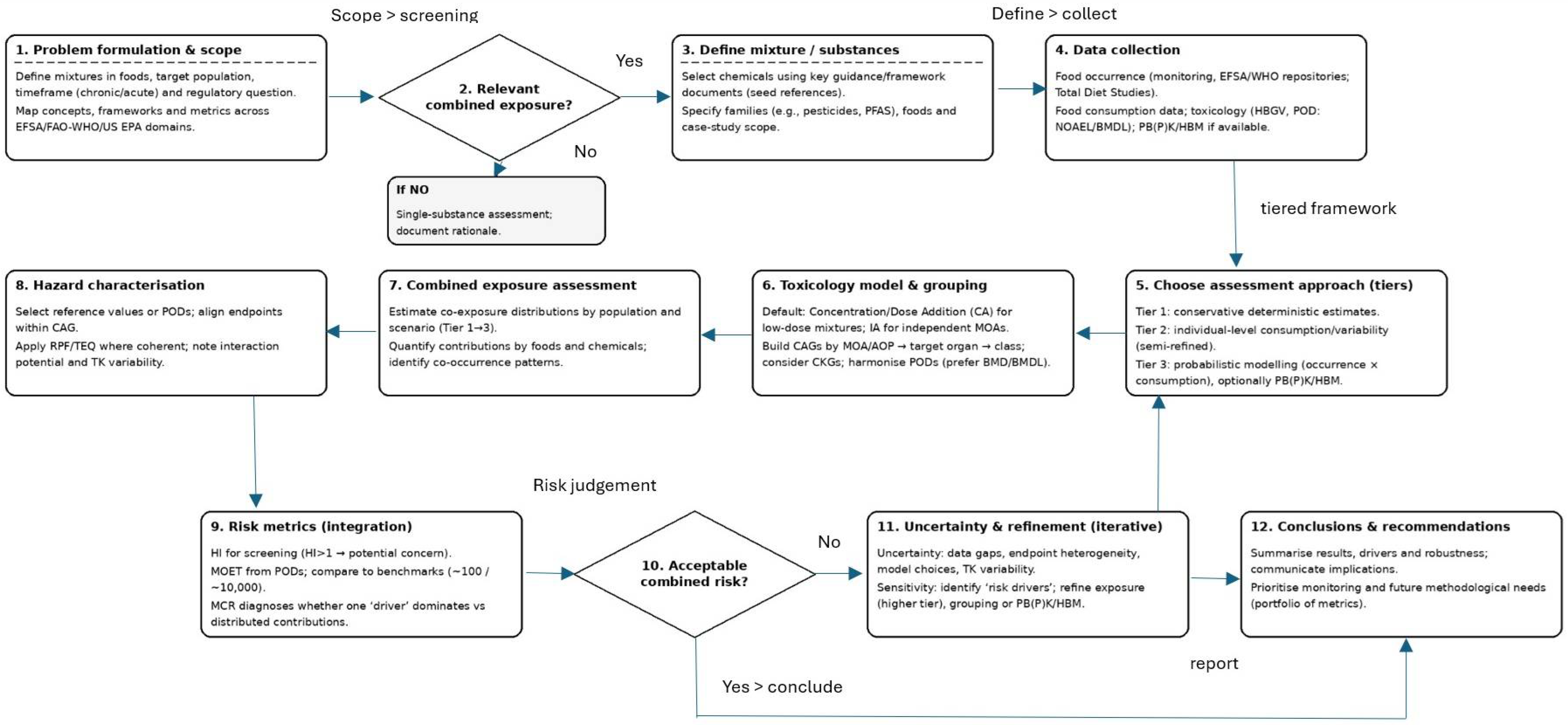 | Grouping criteria and justification (CAGs/CKGs) | Scientific rationale defining which substances are assessed together (shared toxicological mode of action or kinetic behaviour) | Determines mixture composition and applicability of dose-addition models | Misclassification can bias risk estimates; requires transparent documentation and mechanistic support |