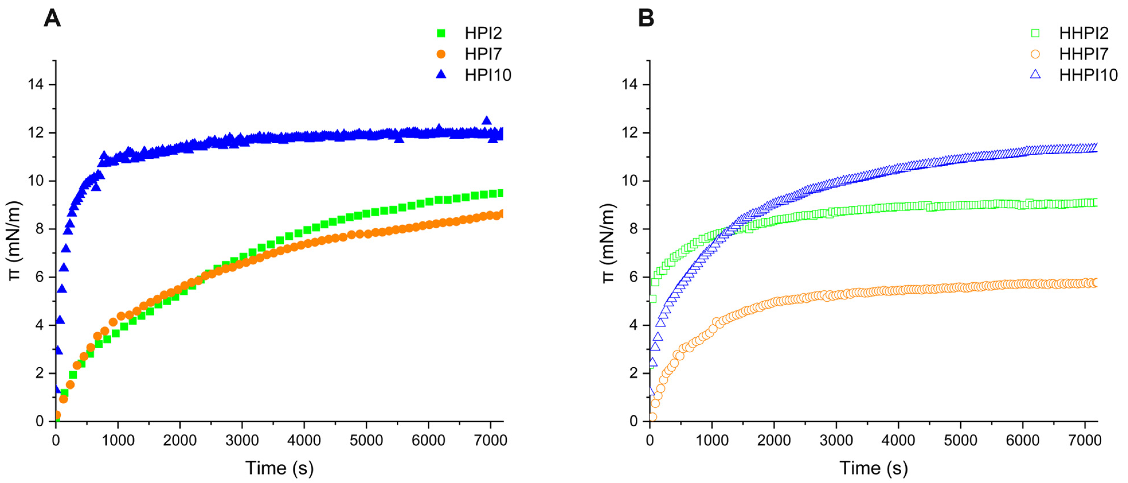 3.3. Protein Unfolding and Rearrangement at the o/w Interface