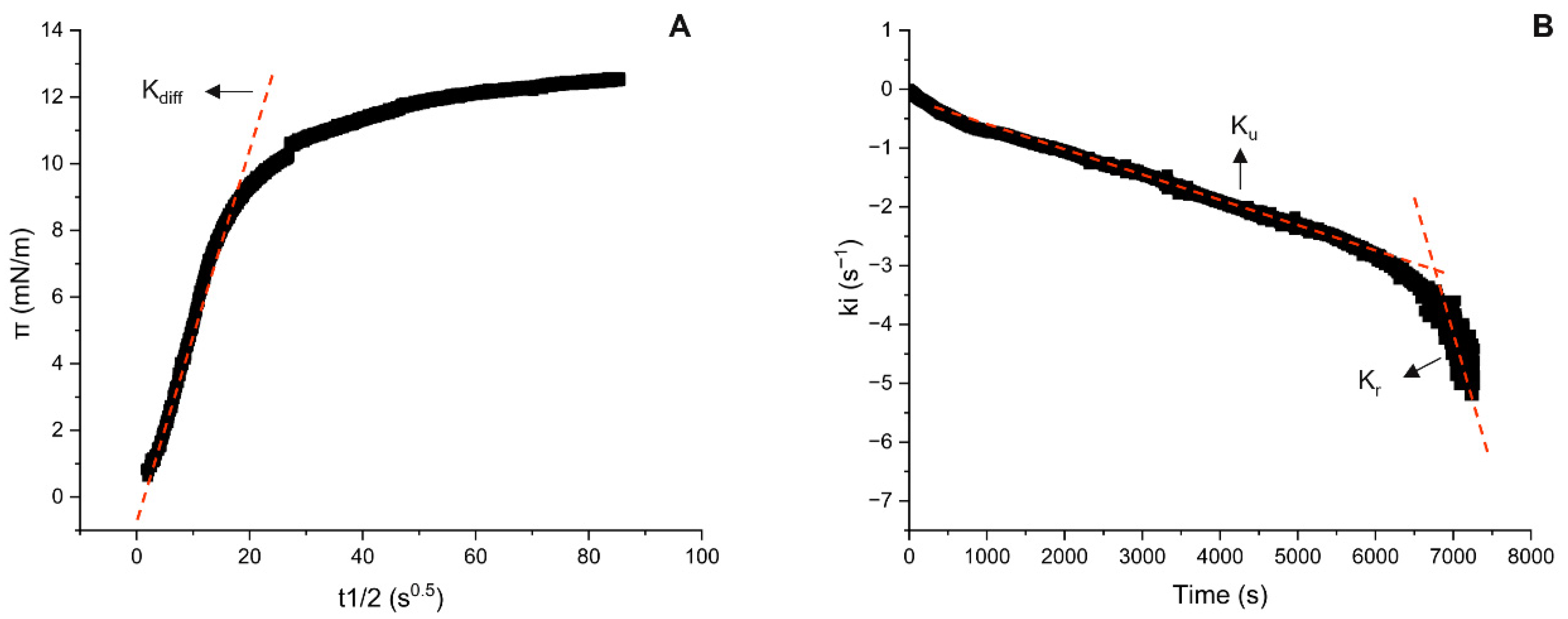 | Sample | Kdiff (mN m−1 s−0.5) | R2 | tdiff (s) |