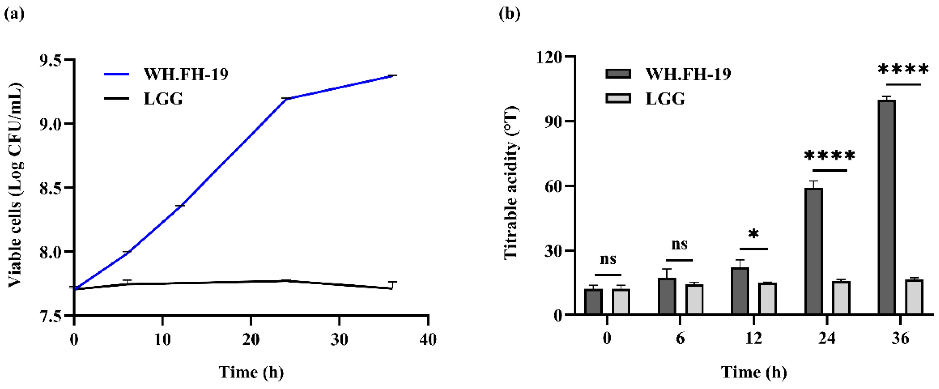 Chicago/Turabian StyleSun, Shiyuan, Lu Feng, Liping Sun, Xuemei Zhu, Mo Zhou, Xinling Li, and Guangqing Mu. 2026. "Lacticaseibacillus rhamnosus WH.FH-19: Probiotic Traits, Fermentation Performance, and Potential for Functional Fermented Milk Production" Foods 15, no. 2: 271. https://doi.org/10.3390/foods15020271